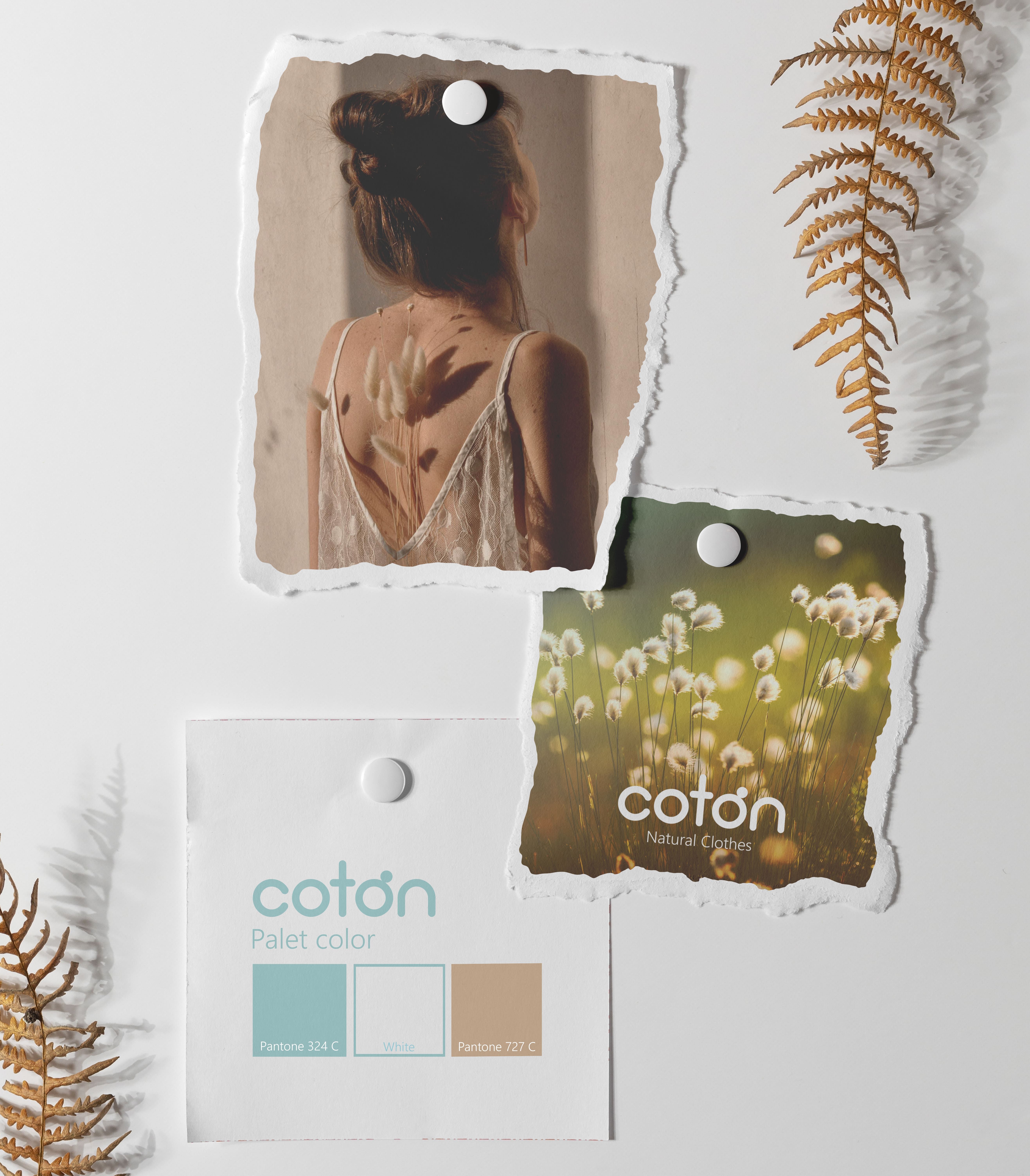 Diseño de Identidad Corporativa para la marca de ropa Coton, empresa textil, caracterizada por desarrollar sus productos con materiales ecológicos y naturales.