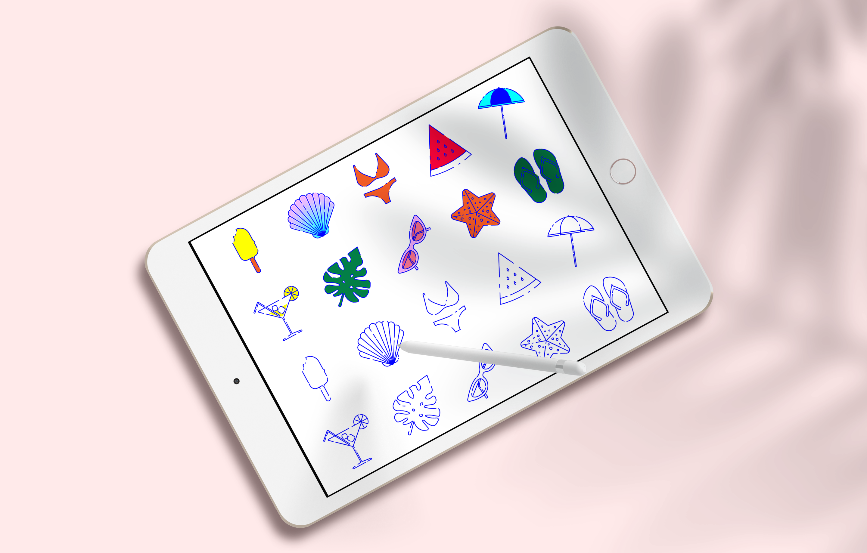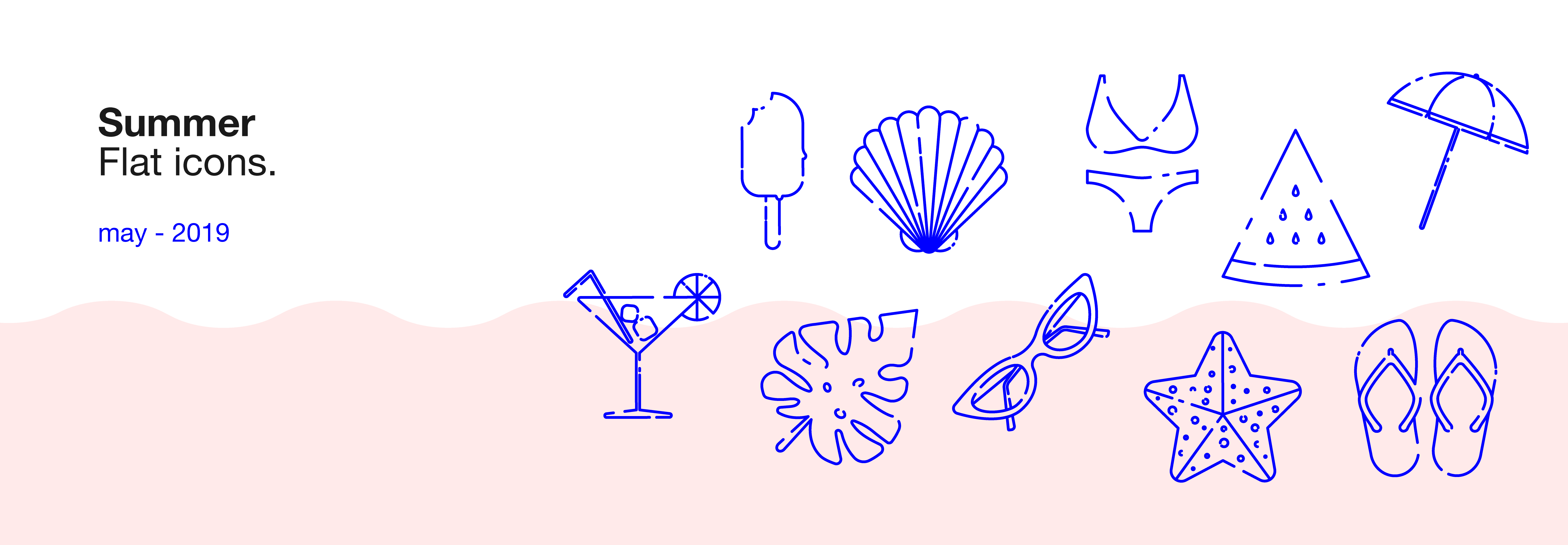 Este conjunto de iconos veraniegos es el resultado de una de las prácticas del curso de Aarón Martínez; “Introducción a Adobe Illustrator” de Domestika basics. Sigue la tendencia del flat design a excepción del degradado de uno de los iconos. Además, con los iconos “Outline & fill” he creado un pack de stickers para WhatsApp que podéis descargar ya mismo y usarlos en todos vuestros planes para el verano, que está a punto de llegar.