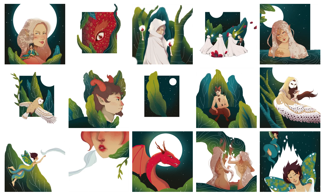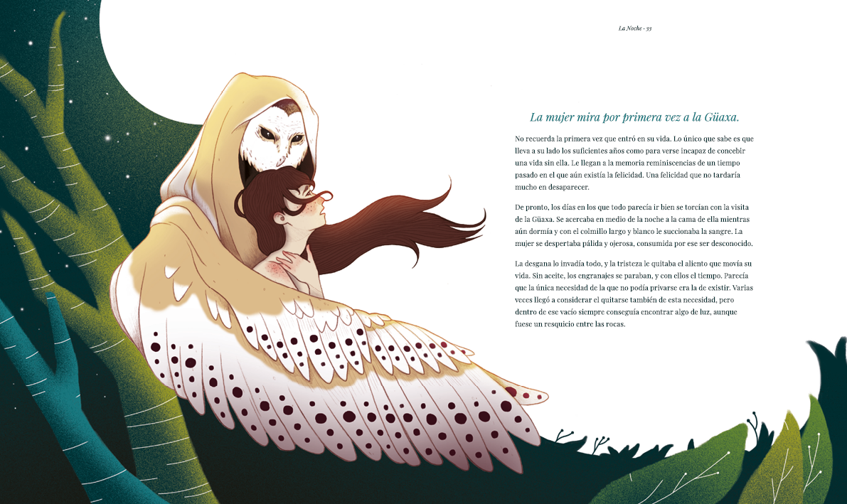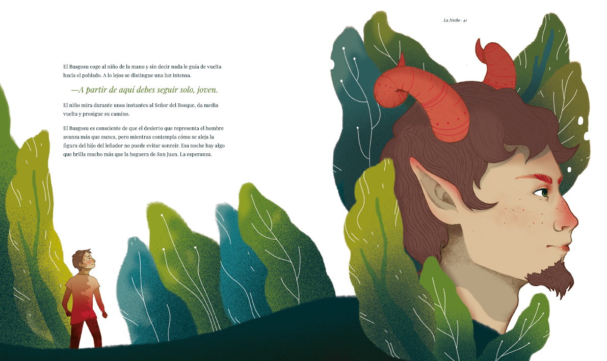 "La Noche" studies the graphic and cultural context that surrounds the world of the asturian mythology and updates its imaginary through editorial design. The project materializes in the form of an picture book about the magic night of St. Jhon, where various mythological characters related to the night and the woods are presented through outstanding illustrations and texts.