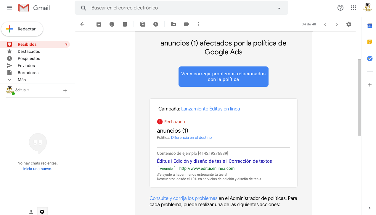 Mi anuncio fue rechazado y no me quedó claro cómo resolver esto.