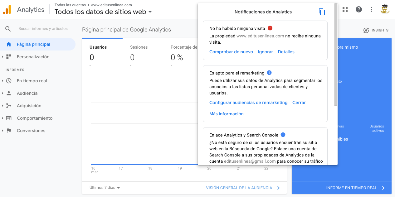 En Google Analytics aparece que tengo cero visitas en mi página web. Por qué pasa esto y cómo tener visitas?