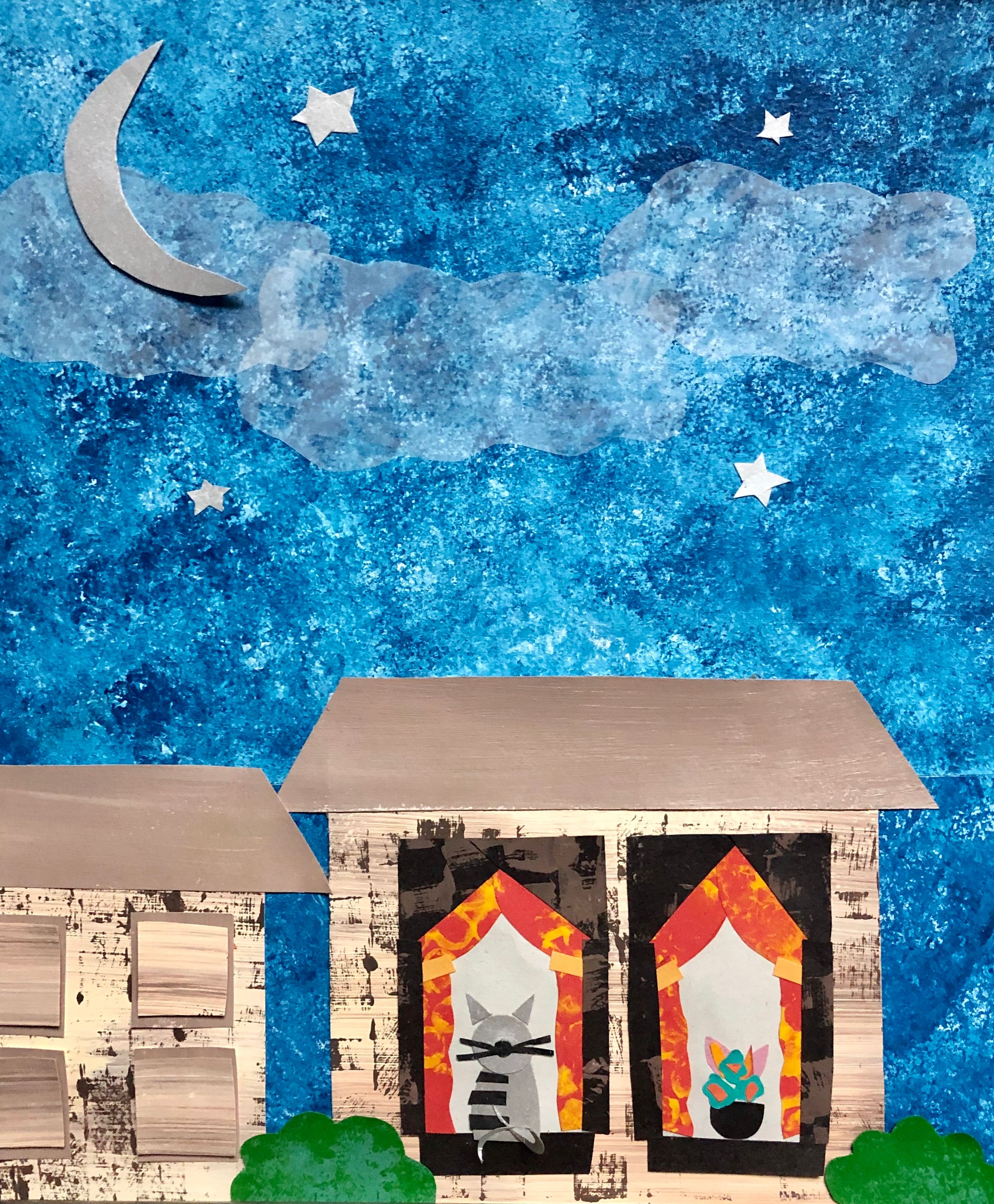 * En la segunda ilus pasa lo mismo que en la primera con las casitas, con las texturas hermosas que tenés me dan ganas de que sean diferentes y las combines. Y los techos y las ventanas estaría bueno que tengan un poco más de contraste porque sino se empasta y no se ven, podrían ser un poco más oscuros por ejemplo.