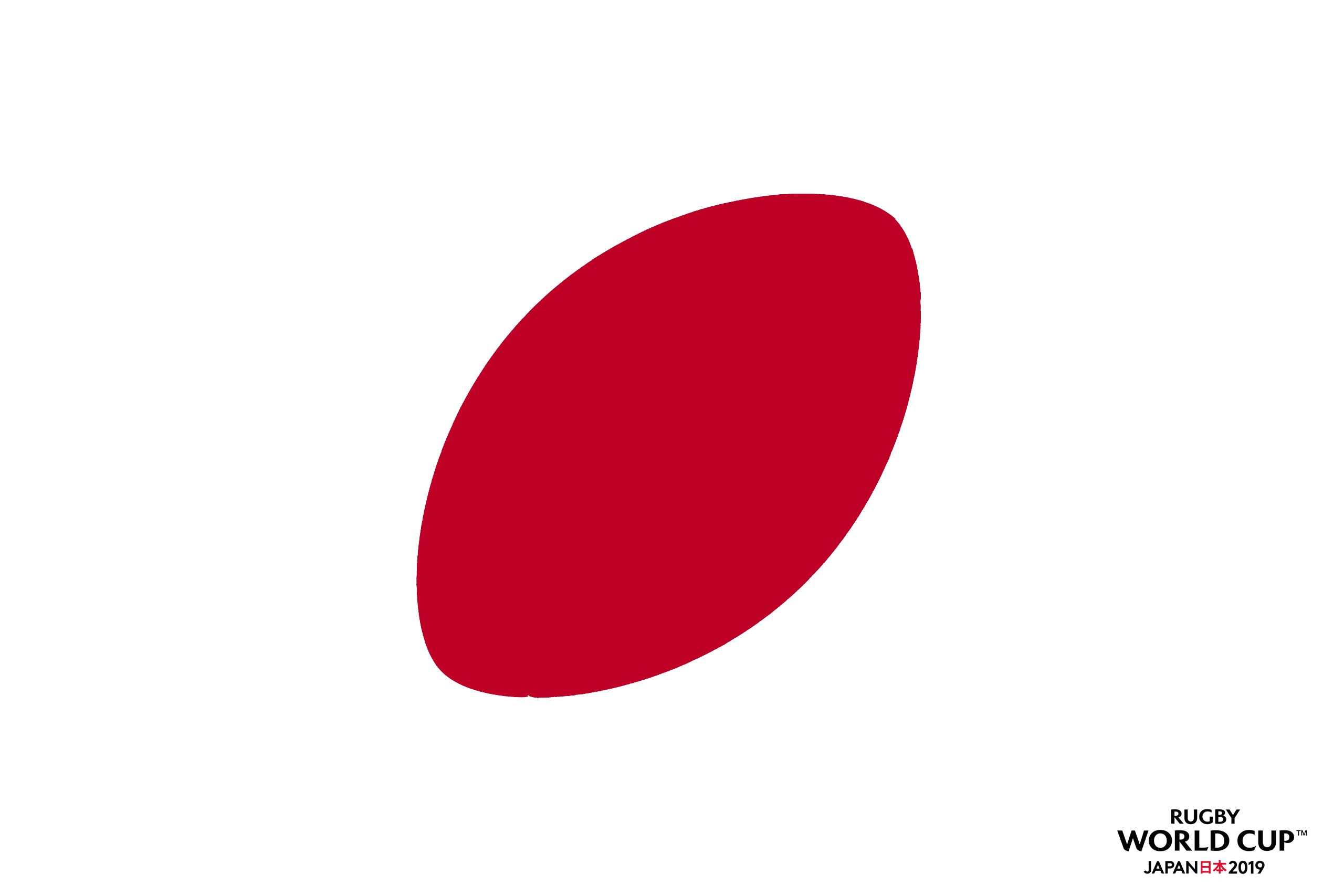 Wizerunek reklamowy oparty na przeróbce i zasobie retorycznym Metonimii, część za całość. Począwszy od flagi Japonii, czerwone koło zostało zmodyfikowane tak, aby miało owalny kształt, podobny do piłki do rugby. Kraj kojarzy nam się więc ze sportem, czyli mistrzostwami świata z miejscem, w którym się odbywają.