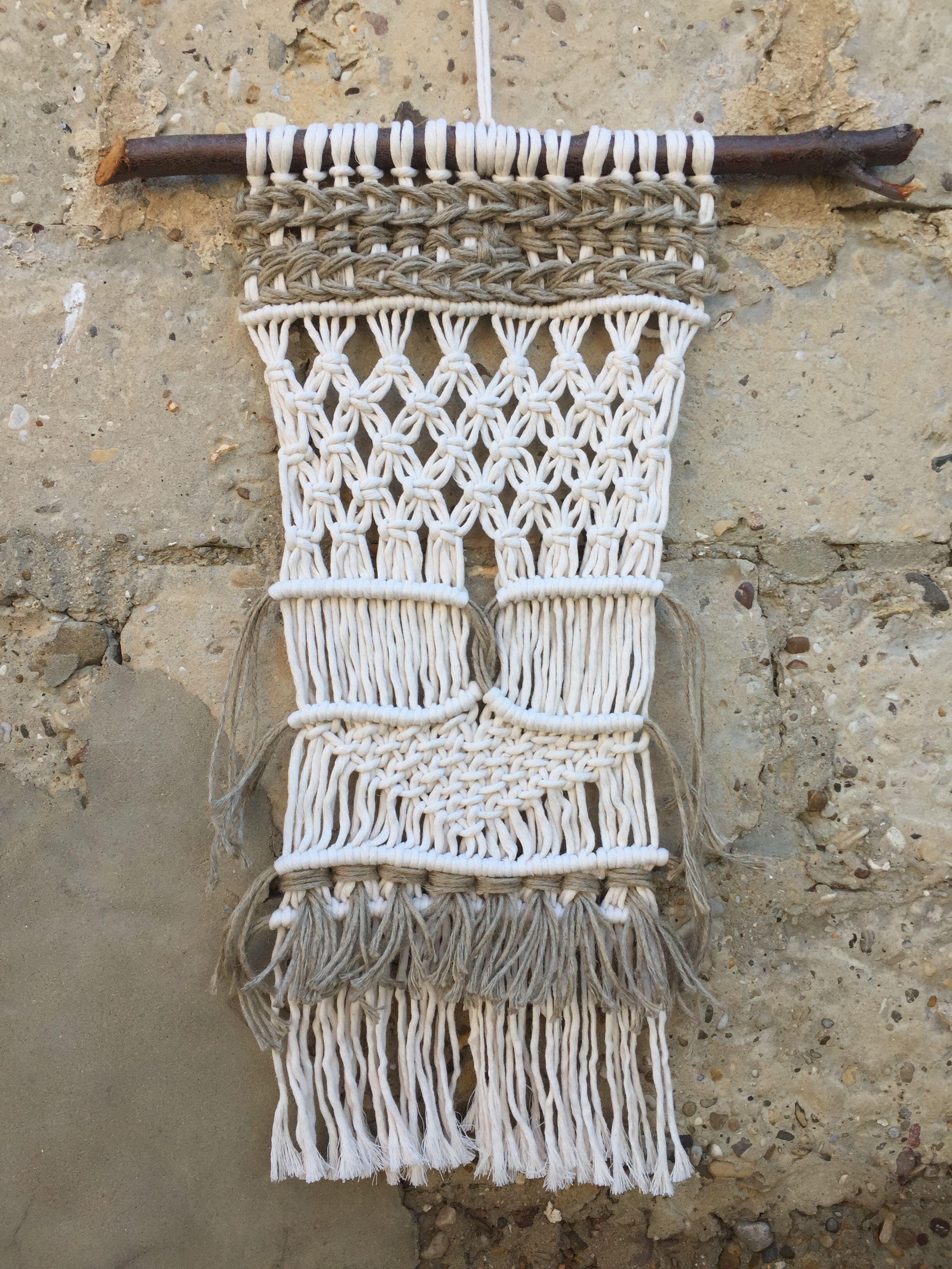 dziękuję za słowa :) Naprawdę starałem się trzymać prosto, zarówno linie węzła sznurka, jak i boki, ale nie było mowy, myślę, że za mocno je zacisnąłem! Może z liną zamiast osnowy byłoby lepiej, albo przypuszczam, że jak zrobię milion węzłów będą bardziej równe :)