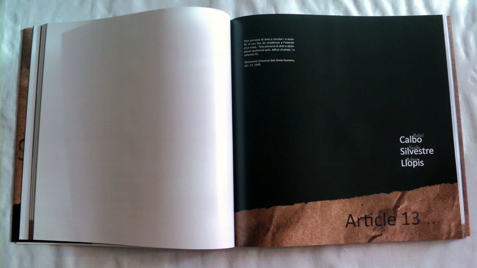Es un proyecto editorial que realizamos los alumnos de la EASDO para la Unesco de Alcoi en Alicante. En cada artículo hay tres artistas que escriben una poesía con el derecho que les ha tocado y una visión de él con obras de arte.