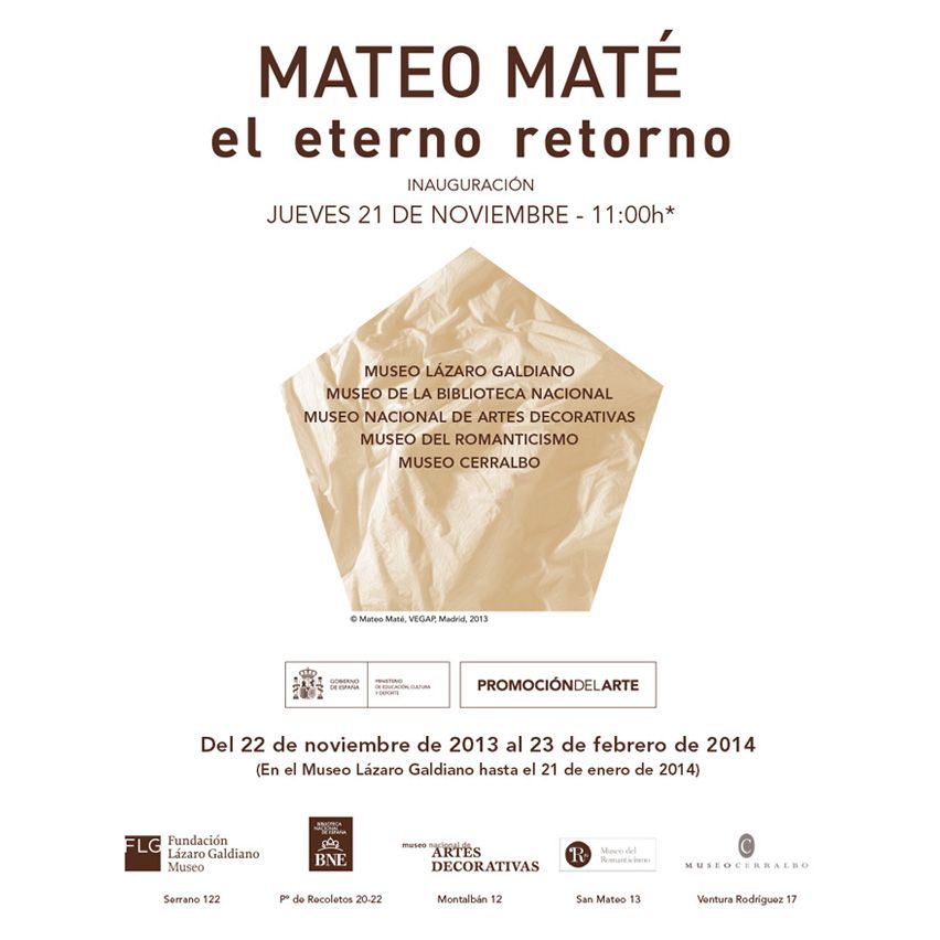 “El eterno retorno” es un proyecto que muestra el universo personal de Mateo Maté conviviendo con las colecciones de distintos museos de Madrid. Este artista madrileño, propone una intervención que conecta su obra con espacios culturales de su ciudad natal que han influido decisivamente en la construcción de su trayectoria creativa.