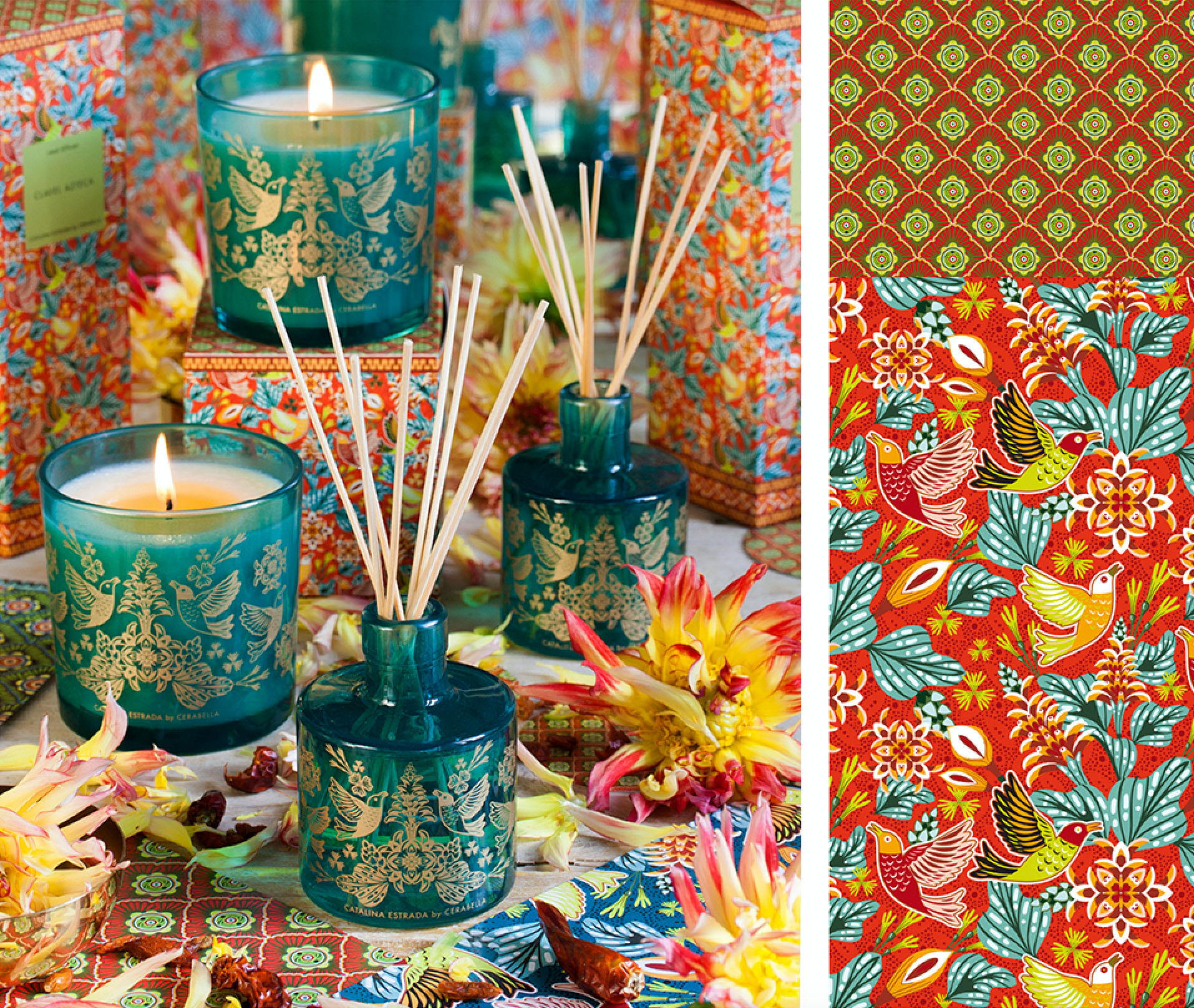 Catalina Estrada (@catalinaestrada) é ilustradora e designer de padrões. Colombiana, cresceu cercada pela mata dos arredores de Medellín, Colômbia. Por isso, as imagens de árvores gigantes, plantas deslumbrantes e cores intensas são suas musas e obsessões.