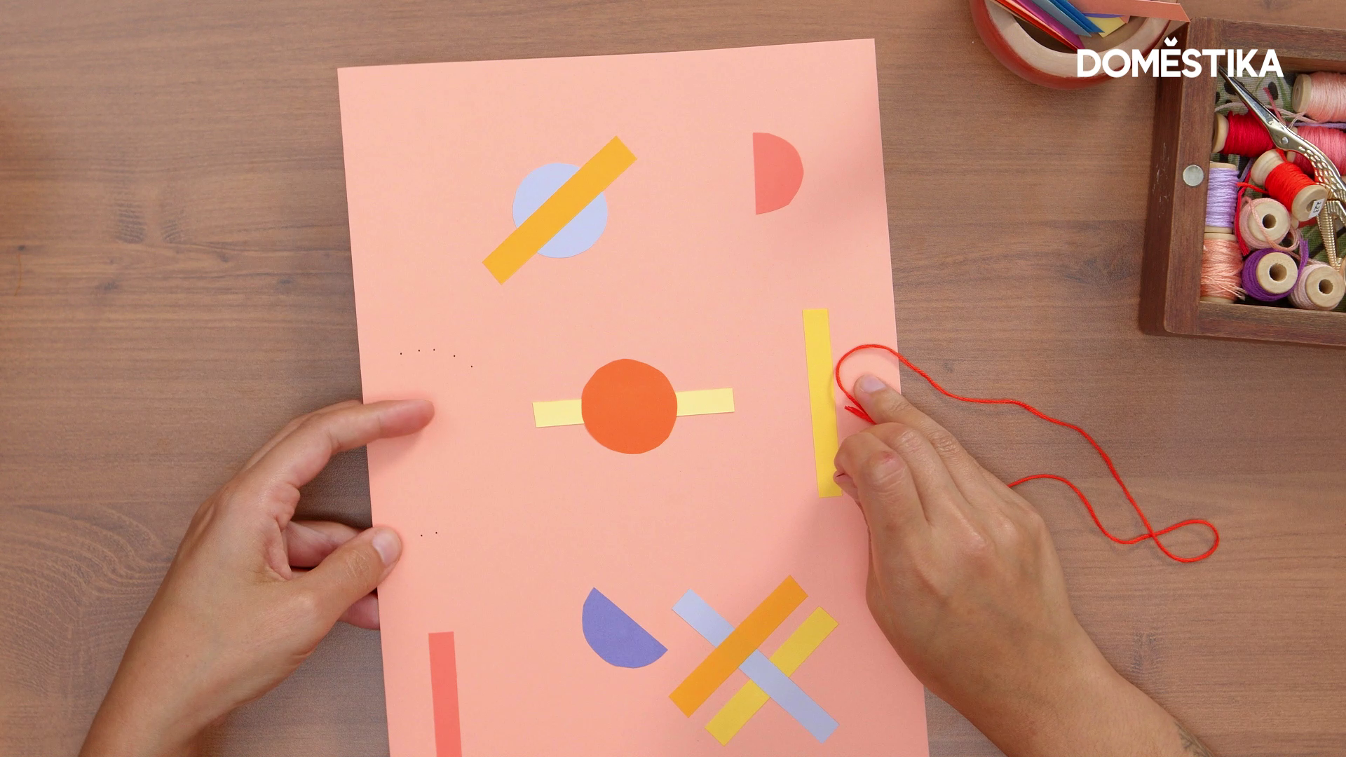 Só depois de planejar e criar os furos você bordará as linhas. Diferente do tecido, que permite furos em diferentes pontos sem deixar marcas caso você mude de ideia, o papel é mais delicado e exige um planejamento mais metódico.
