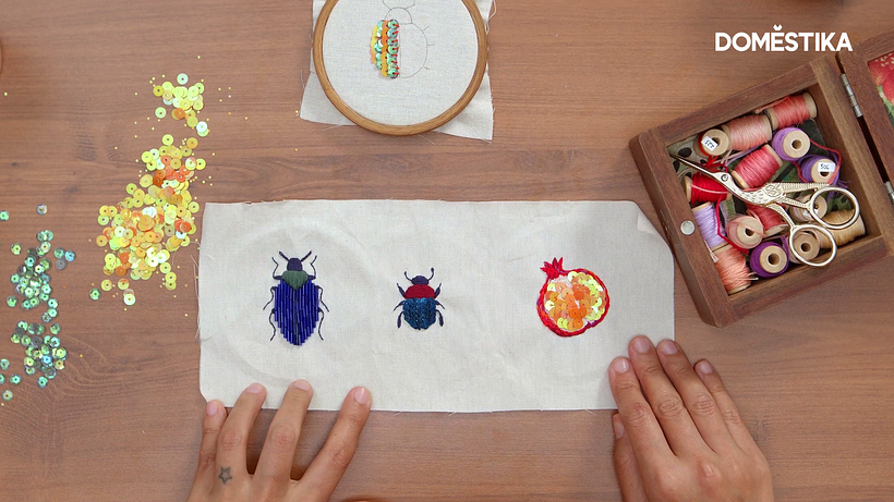 Aprenda como criar bordado à mão utilizando materiais como lantejoulas e papel para dar vida a composições originais