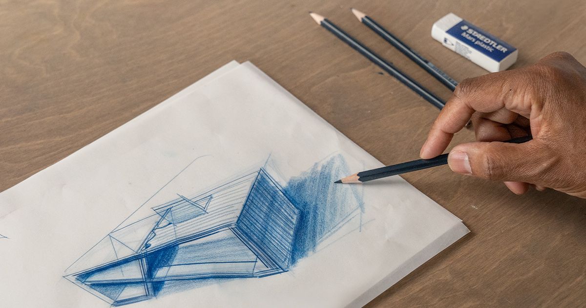 O esboço permite-lhe explorar visualmente os desejos do cliente. Ao traduzir as suas ideias em formas e linhas grosseiras, começa a descobrir a essência do que ele procura. É uma dança colaborativa em que as ideias ganham forma.