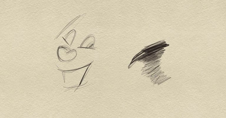 "É um pincel grande, se está buscando bons borrados. Também serve para sombreamento, com um aspecto similar ao do grafite ou carvão sobre papel real. Junto com o Animator Pencil, esses são os dois pincéis que mais uso ao fazer esboços."