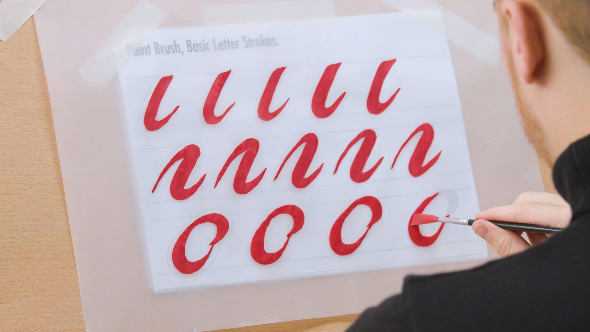 É muito importante escolher o pincel adequado para os traços das letras: se for muito grande, será difícil conseguir traços consistentes; se for muito pequeno, demandará muitos traços para encher o espaço, tornando mais difícil conseguir uma linha suave.