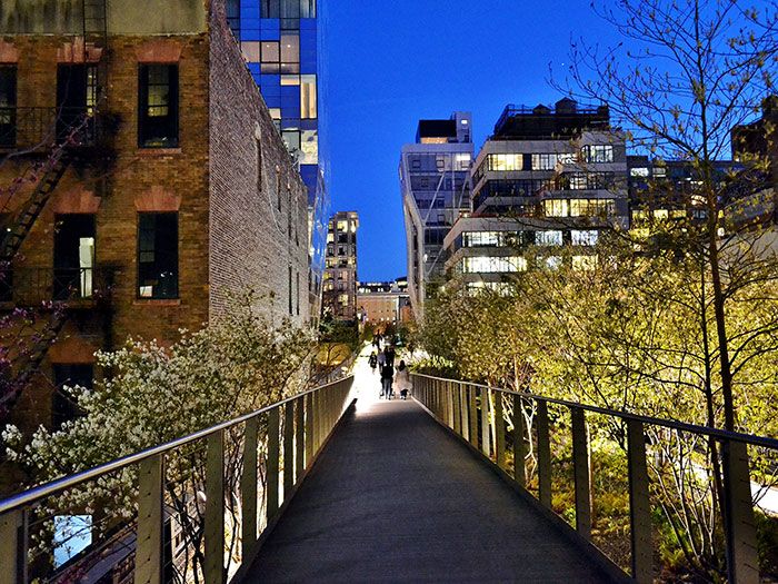 Este parque nova-iorquino elevado, construido sobre um ferroduto desativado, inspirou-se num projeto similar de Paris, o Coulée verte René-Dumont. Marco da revitalização do Meatpacking District de Manhattan, foi desenhado em 2006 por James Corner, Diller Scofidio + Renfro.
