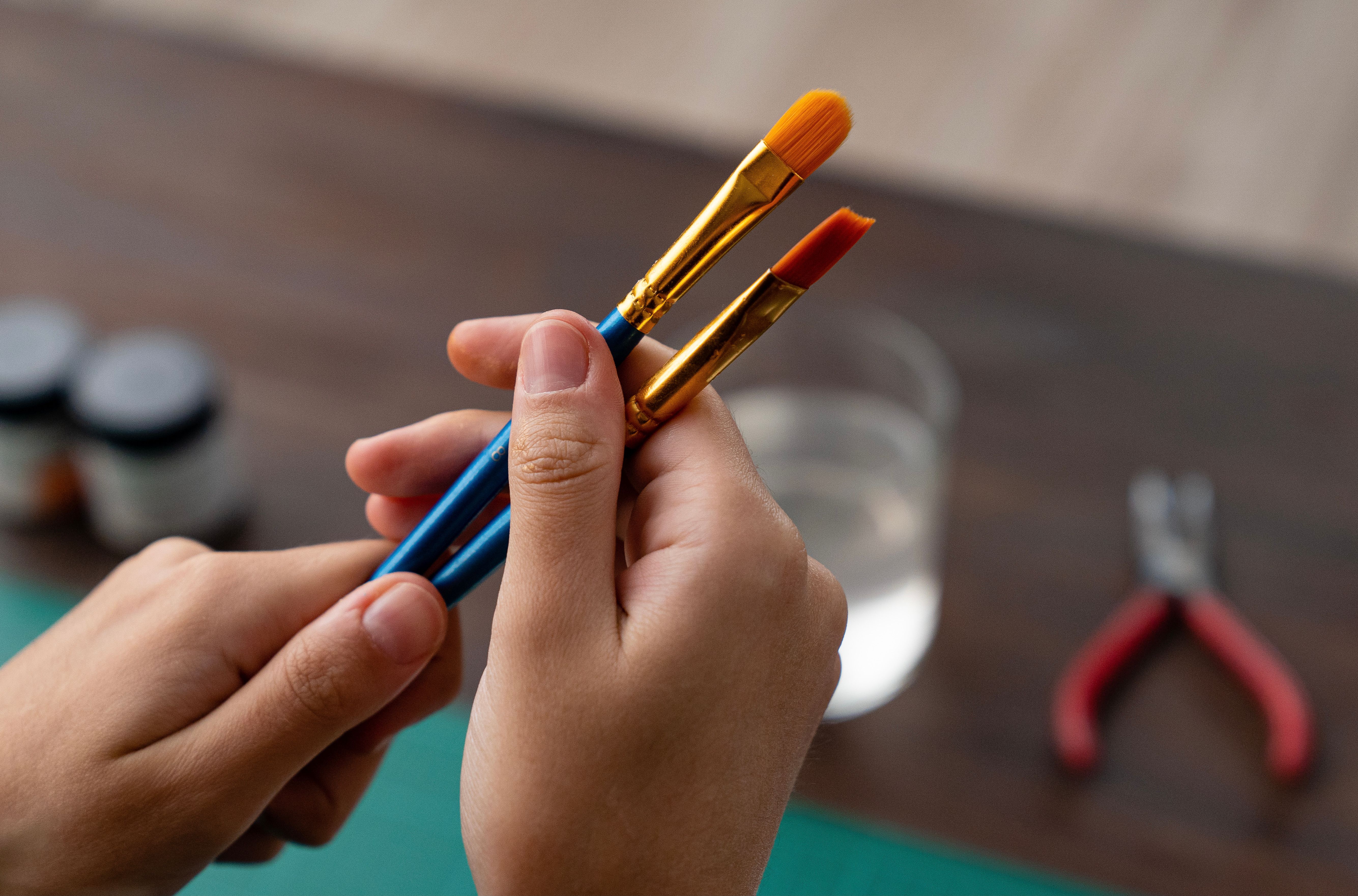Um para o liquid clay (a forma não importa) e outro achatado para o verniz.