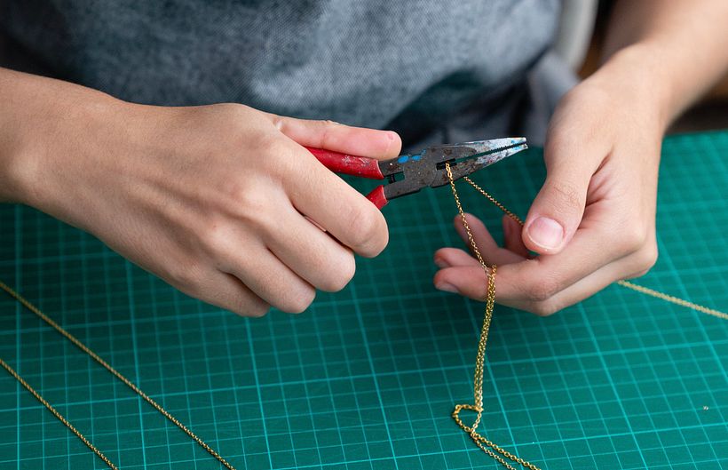 Você precisará de duas ou três argolas para cada colar. O ideal é que sejam do mesmo material da corrente, sobretudo se for metálica.