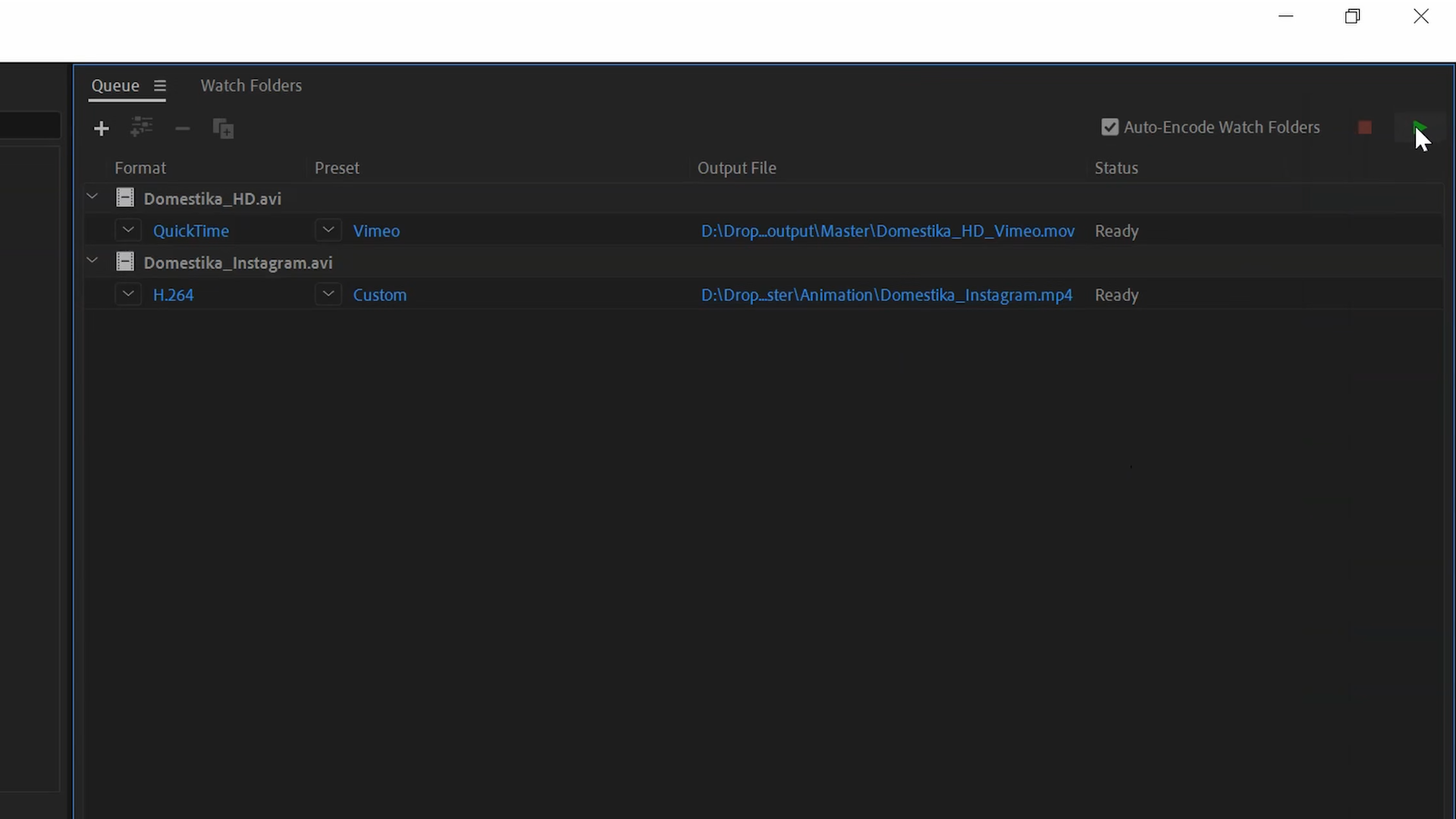 1. Arraste e solte seus arquivos de animação no painel superior direito do Adobe Media Encoder.
