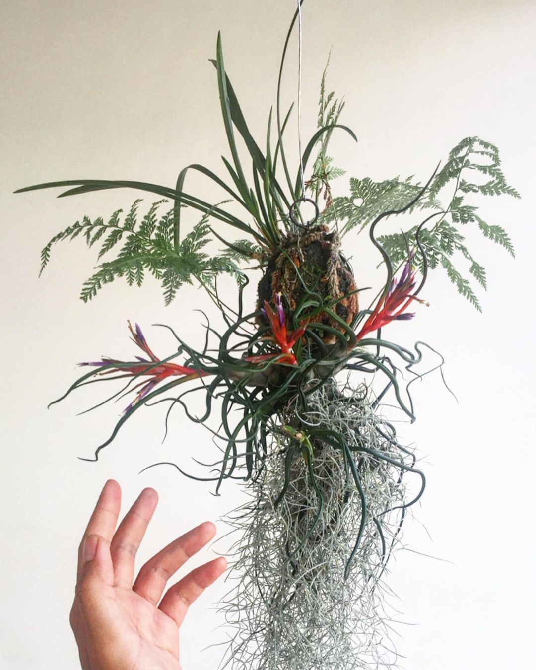 Como a Tillandsia cresce naturalmente limitada pelo espaço, quase não possui raízes e seu habitat natural é suspenso, por isso é comum que os amantes da kokedama a escolham como protagonista de suas obras. Trata-se, também, de uma planta ideal para quem tem pouca experiência com jardinagem. Por conta de sua independência, tornou-se a planta perfeita para quem não tem tempo de cuidar do seu jardim.