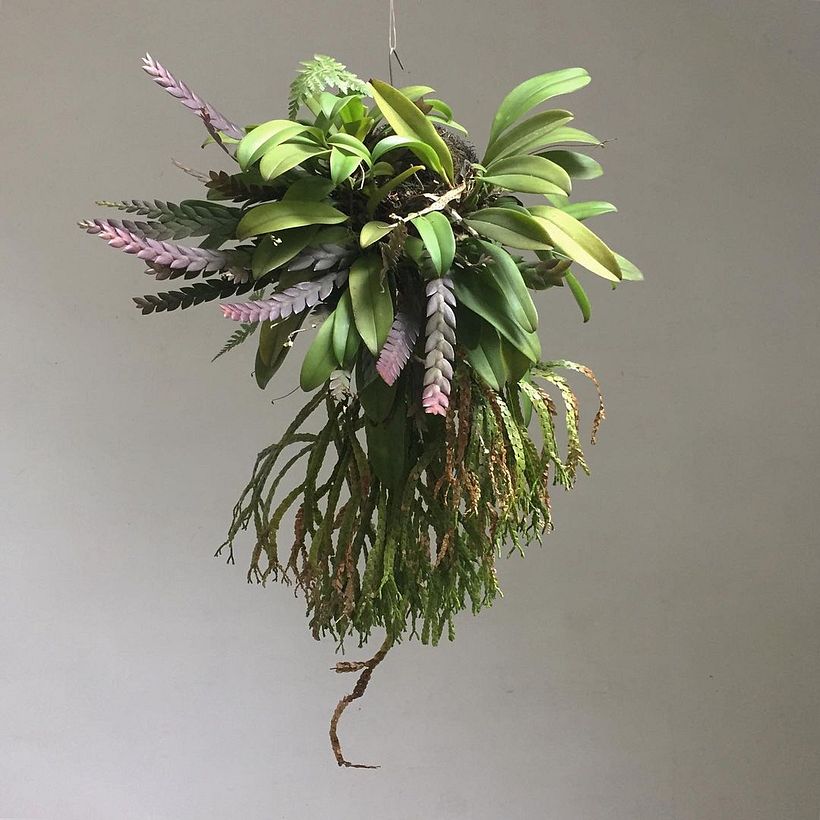 Para aqueles que amam escolher plantas menos convencionais, como trepadeiras, pendentes etc., podemos pensar em desenhos que se expandam em diversas direções, inclusive para baixo.