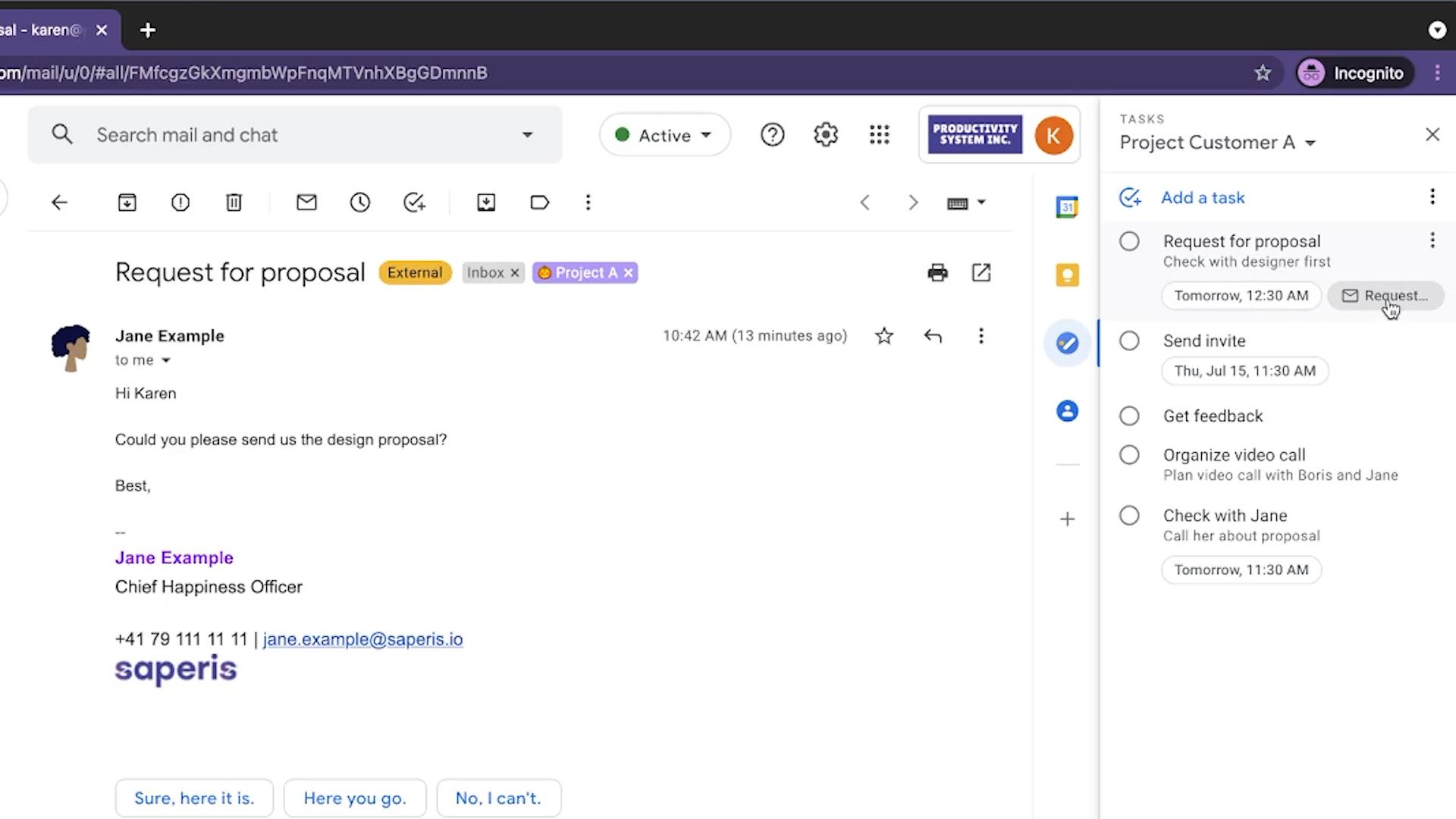 4. Crie uma tarefa com base em uma mensagem do Gmail
