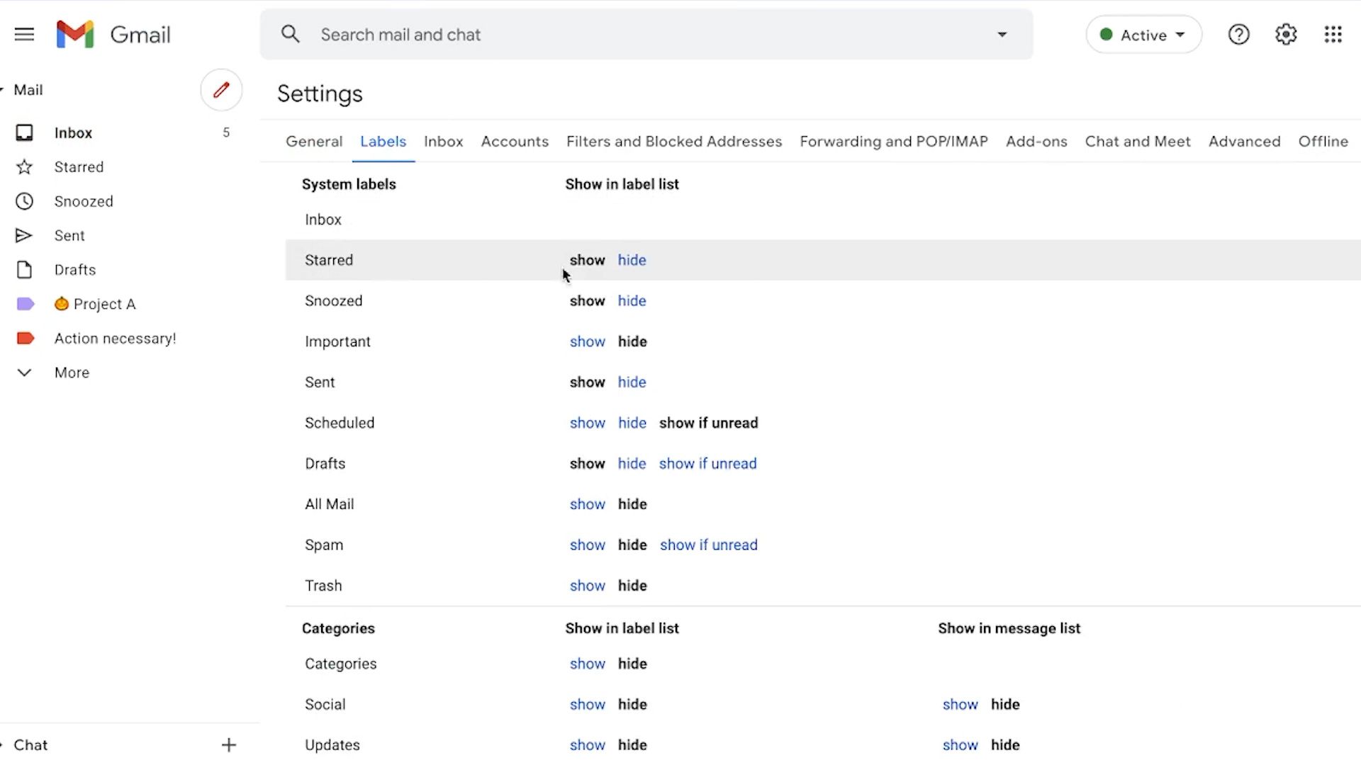 Chanel acredita que os marcadores podem tornar seu e-mail um pouco carregado. Para limpá-lo, clique no ícone de engrenagem e depois em “Ver todas as configurações”.