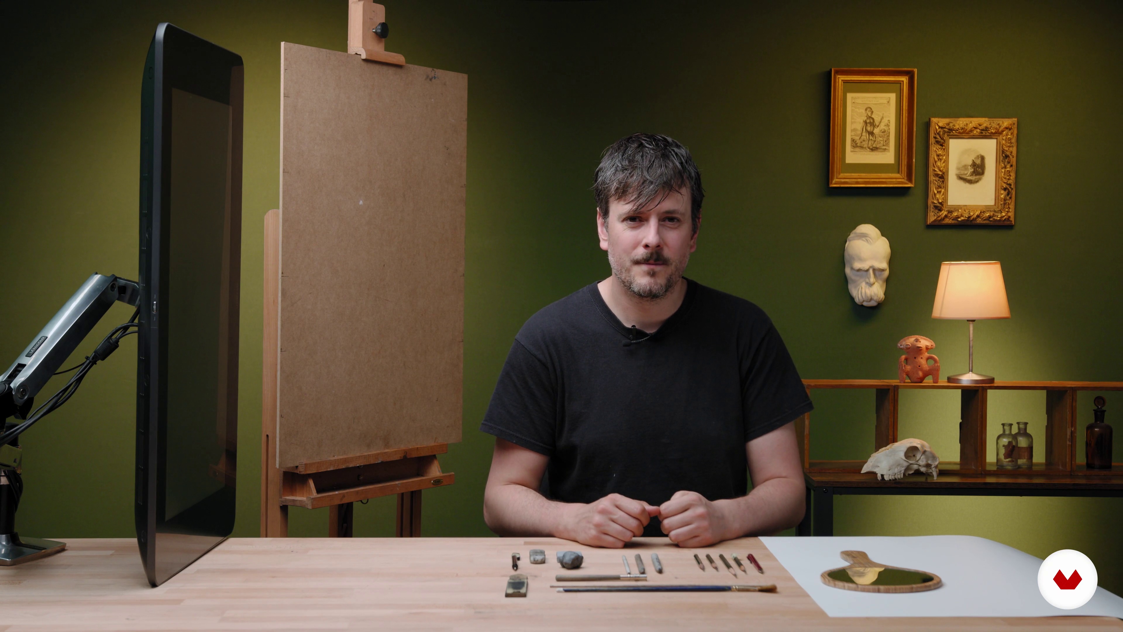 “Nesta lição, falarei sobre os materiais de que precisaremos para fazer nosso desenho de figura realista. É importante que, sempre que possível, você se atenha aos materiais específicos que recomendo na lista de recursos adicionais no final desta unidade.”