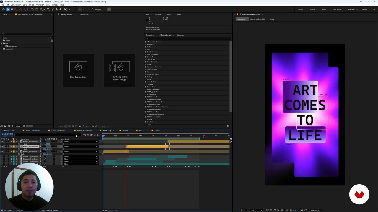 Nesta videoaula, Darwin Pacheco aborda o tópico: Bem-vindo ao curso,que faz parte do curso online da Domestika: Prototipagem de motion graphics para Reels com Inteligência Artificial. Crie gráficos em movimento profissionais usando inteligência artificial e After Effects, desenvolvendo vídeos e animações finais exclusivos..