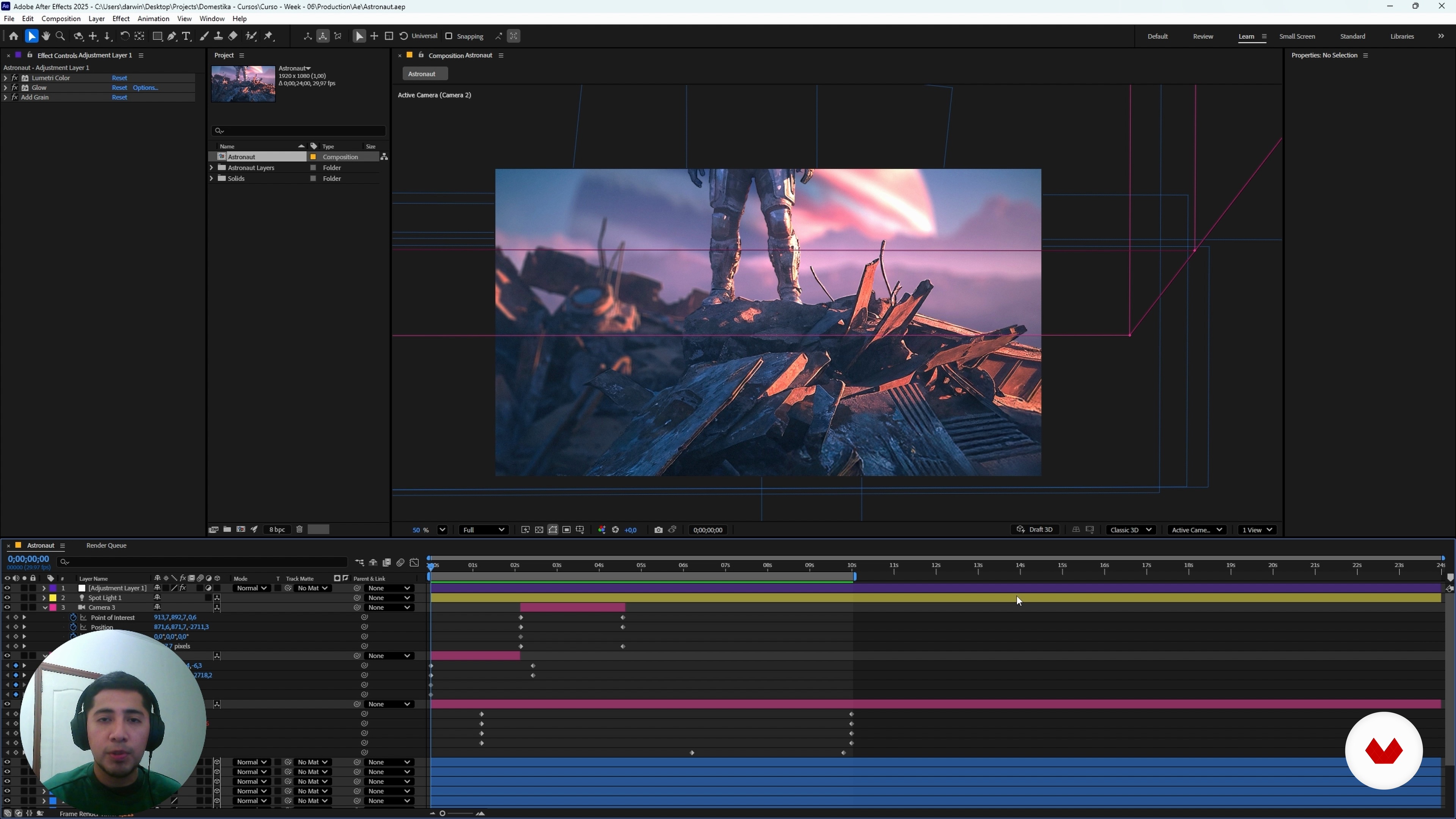 “Você vai descobrir como transformar uma única imagem estática em uma animação parallax 2,5D. Você vai gerar arte conceitual com IA usando o Freepik, preparar e recortar a imagem no Photoshop com o Firefly e depois compor e animar a cena no After Effects para criar profundidade e movimento cinematográfico.”