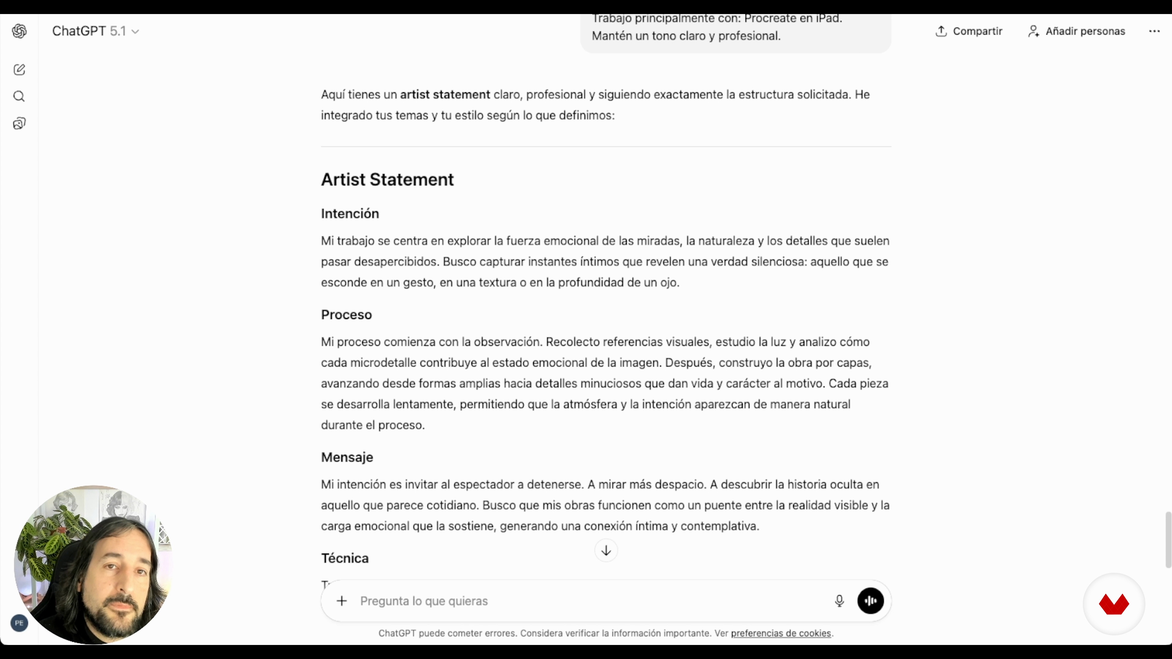 Nesta videoaula, Jaime Sanjuan Ocabo aborda o tópico: Escrita dos textos do seu portfólio com o ChatGPT,que faz parte do curso online da Domestika: Crie um portfólio artístico profissional com IA. Crie um portfólio artístico profissional com IA usando ChatGPT, Freepik, Photoshop, Illustrator ou Canva.