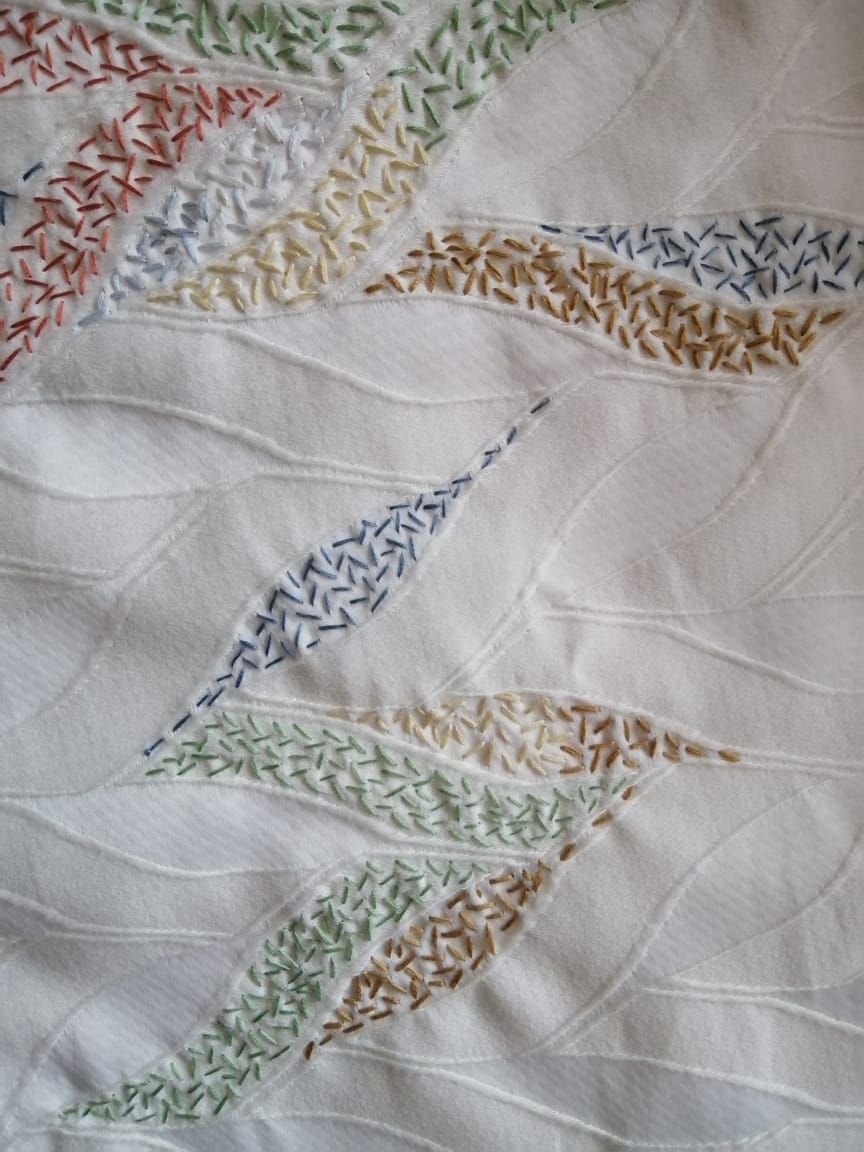Oh. Esse trabalho foi intenso. Interessante ver como, apesar do tecido ter textura, a intervenção ficou charmosa.