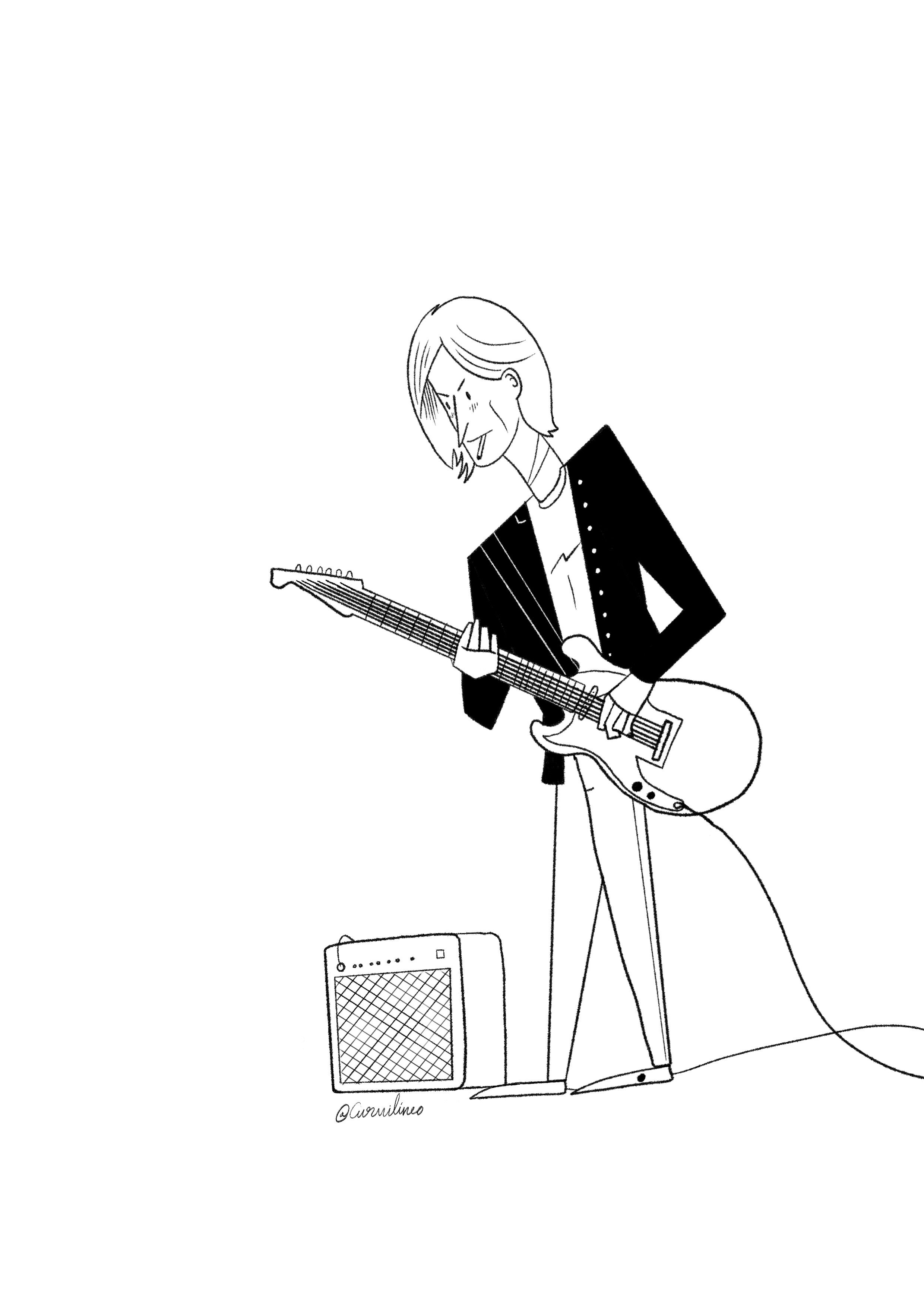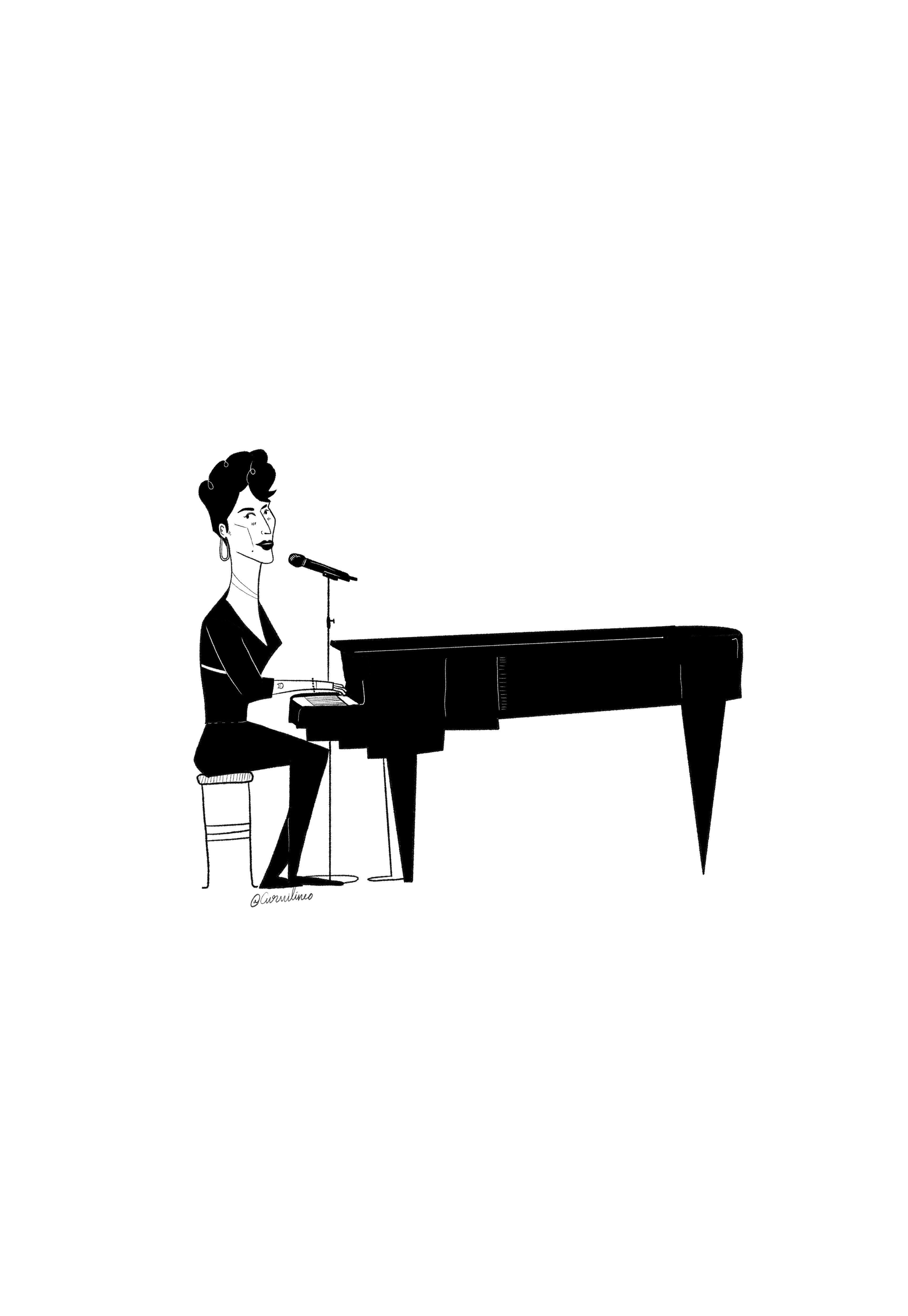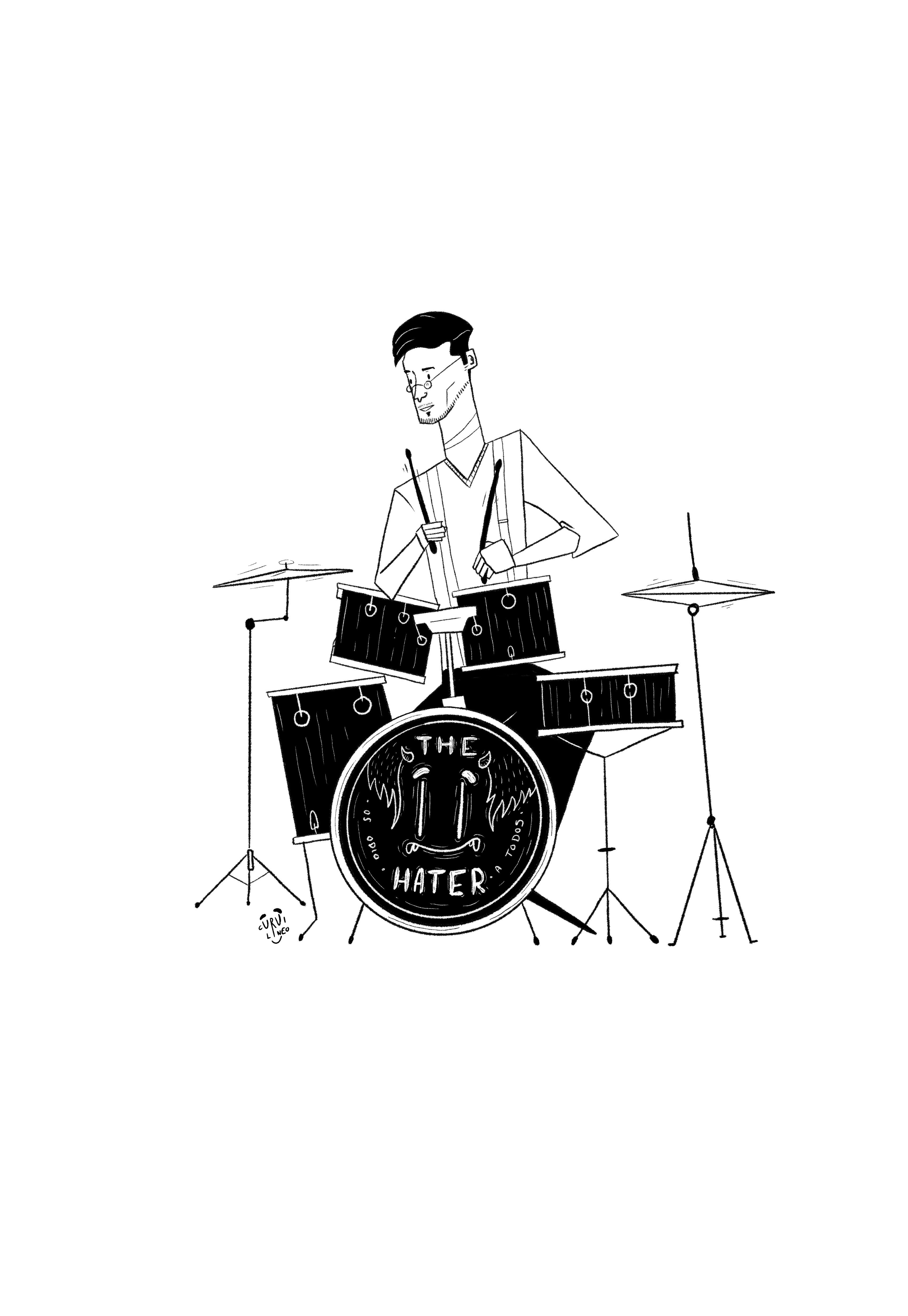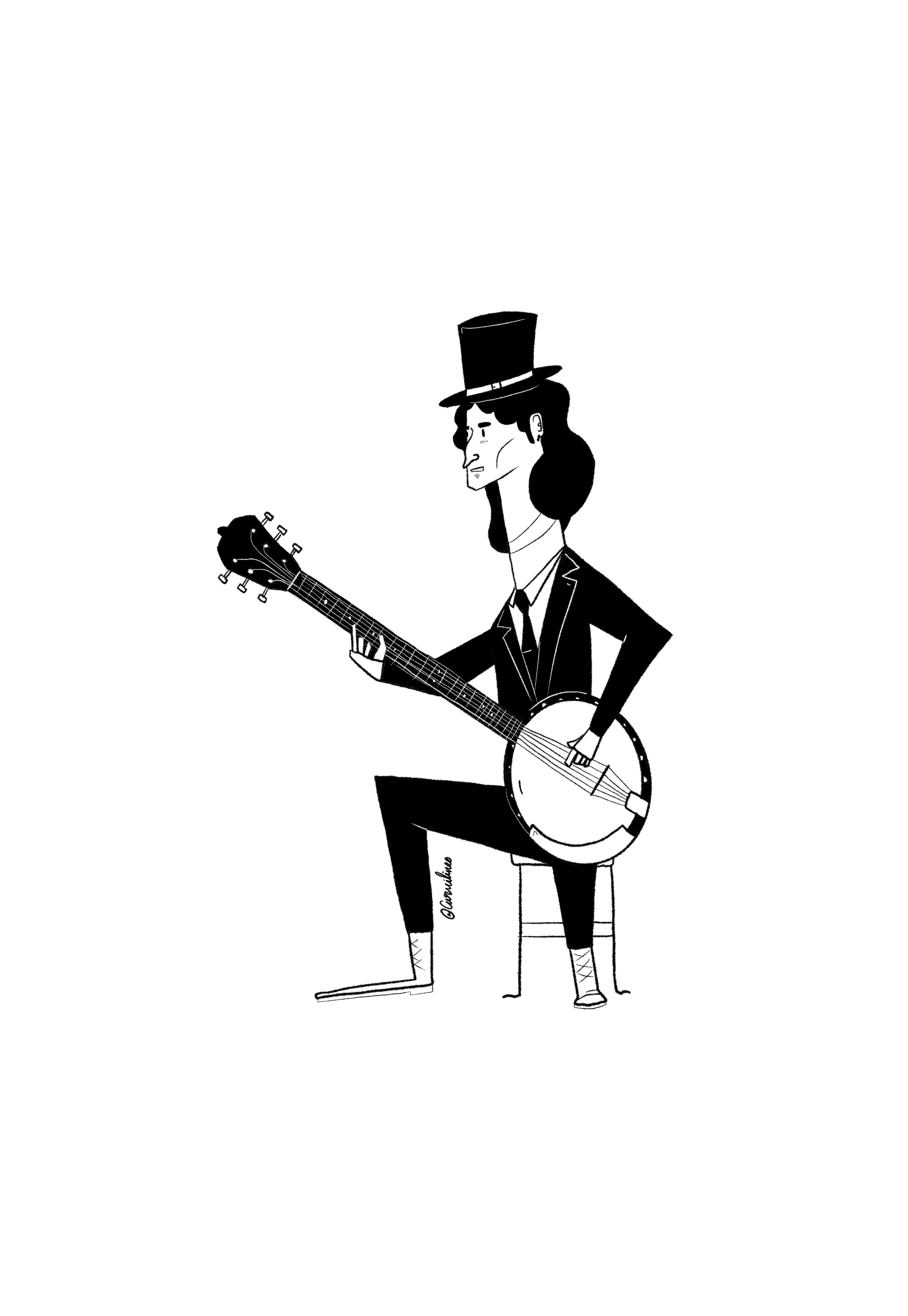 Me refugié en el dibujo para crear esta serie de ilustraciones en blanco y negro que muestran a músicos con distintos instrumentos.