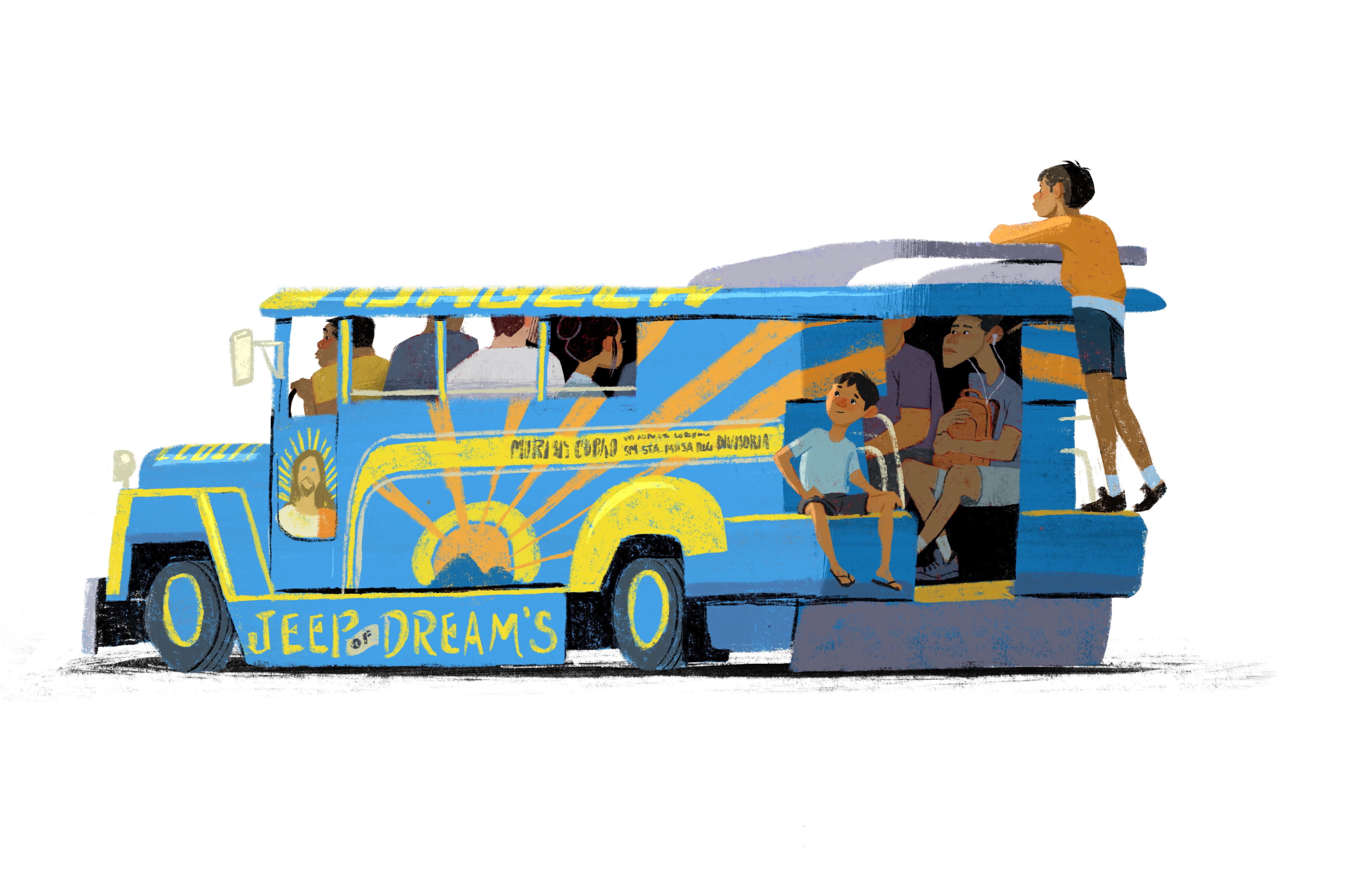 The next two images inspired by a trip to The Philippines, one is of the stray dogs that roam the beaches of Palawan and the other inspired by the Jeepneys of Manilla.