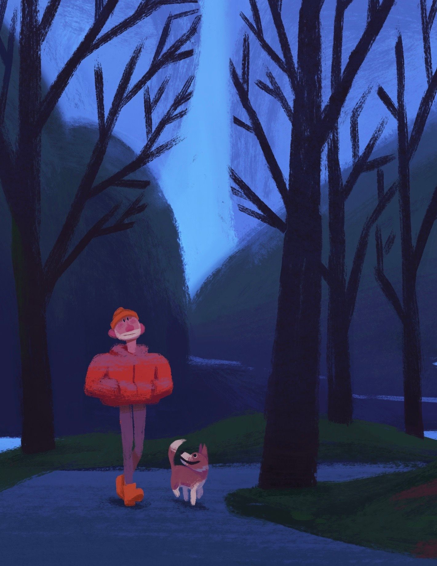 Sometimes travel is more about the people that you meet. Some friends and I met a kind old man walking his dog in a park in Ireland. I was inspired by this man, his dog and the beautiful canopy above exhibiting a phenomenon known as "crown-shyness."