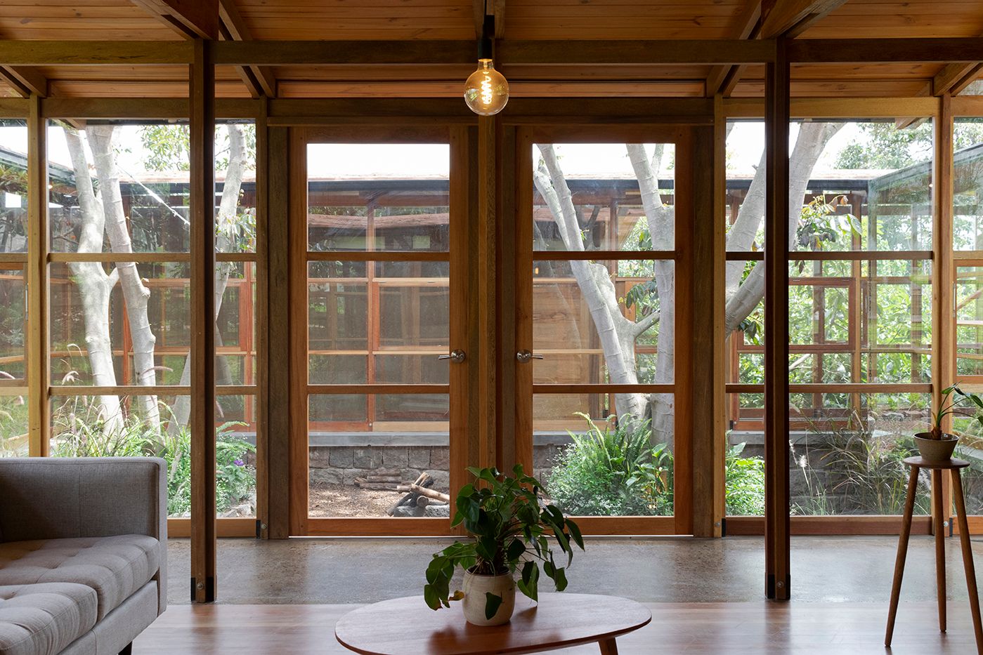 Como condição, cada espaço construído tem uma relação visual e uma conexão física direta com pelo menos um espaço natural. Embora o layout defina claramente o pátio central da casa como semiprivado, os espaços de convivência imprimem seu caráter aos pátios que contêm.