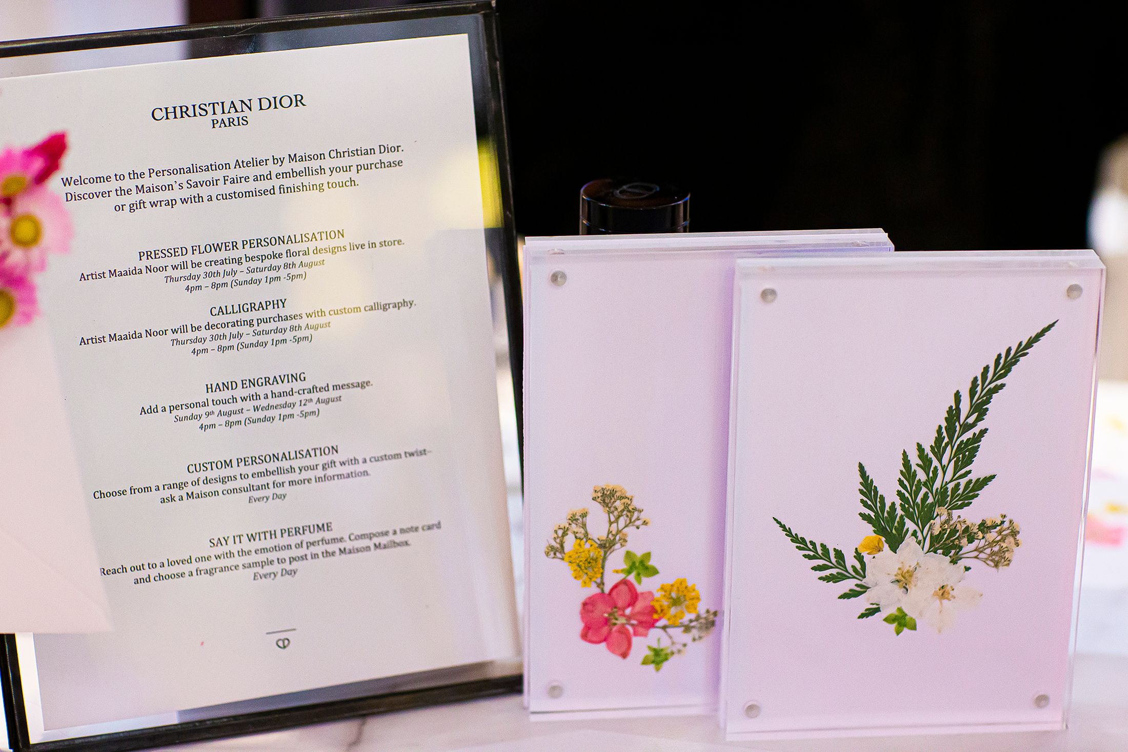 The live events of personalisation were performed at the Dior boutique in Selfridges, London.
