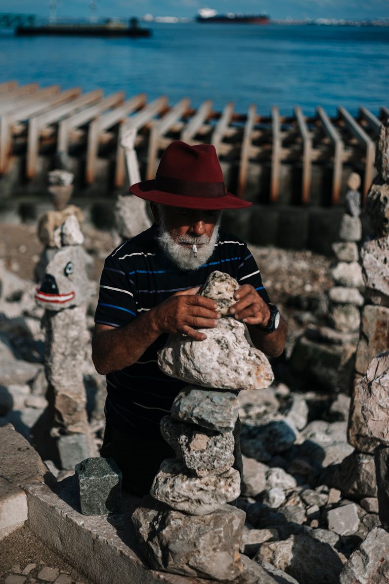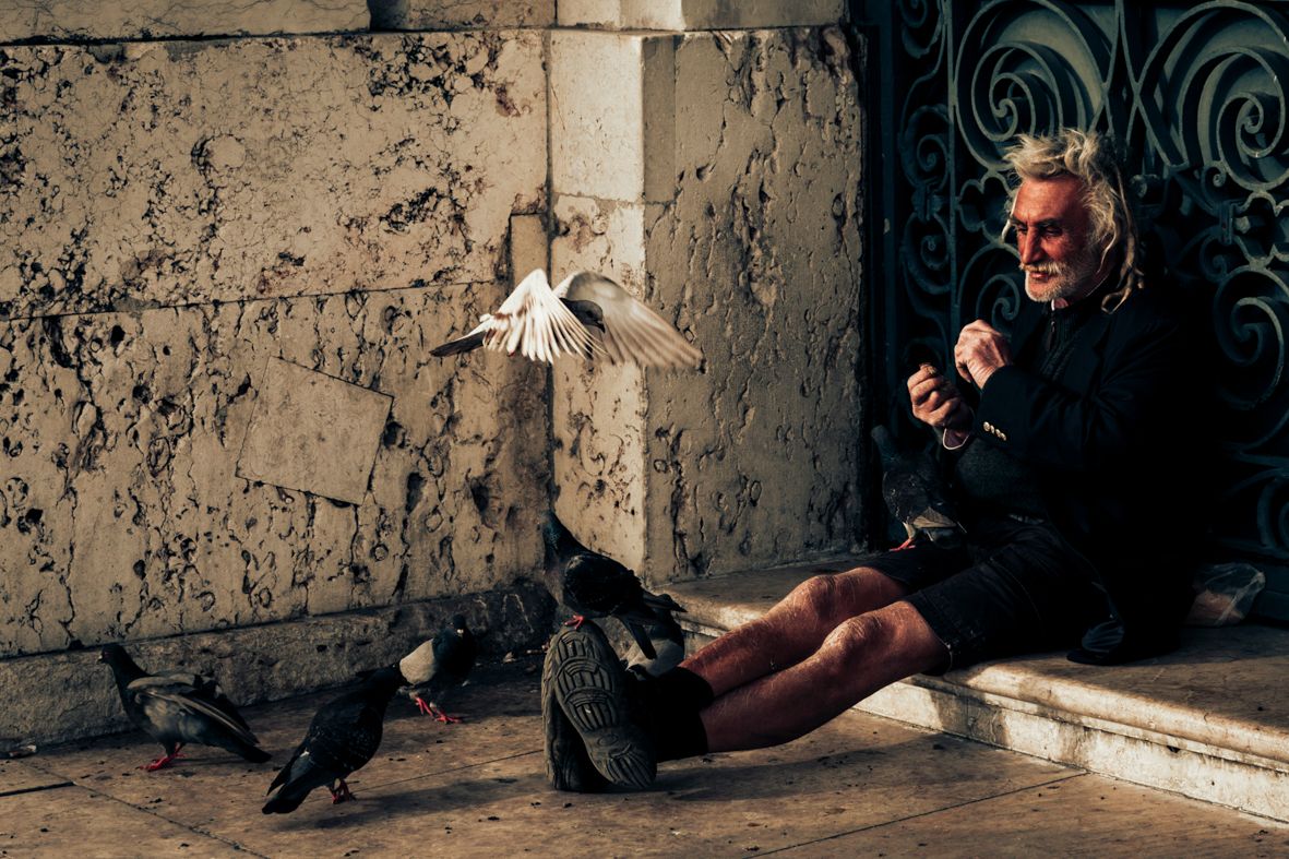 Eu acho particularmente interessantes algumas cenas que também funcionam como metáforas, além da descrição dos fatos presenciados e narrados. O melhor exemplo disso é a foto 6, do senhor empilhando as pedras. A 9, do homem com os pombos, também vai pelo mesmo caminho. Há uma poesia extra nelas que me agrada muito.