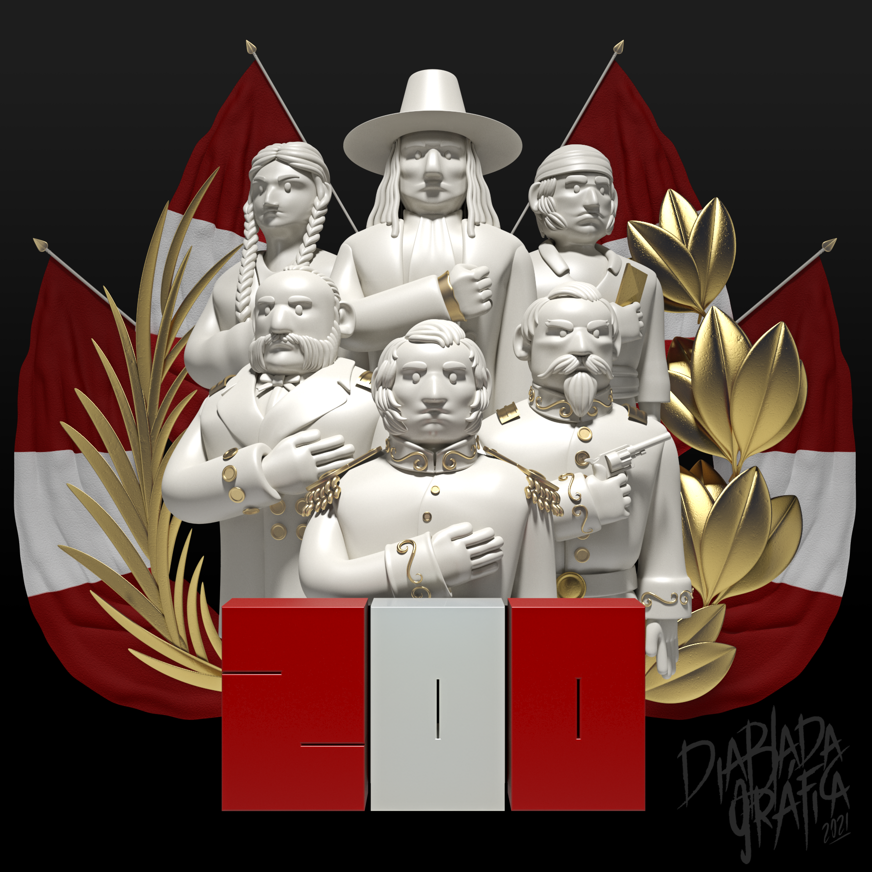 Projeto feito para comemorar os 200 anos da independência do Peru (Bicentenário), decidi colocar os principais protagonistas deste evento, mas eternizando-os como uma homenagem, pais da pátria que deram suas vidas por ela.