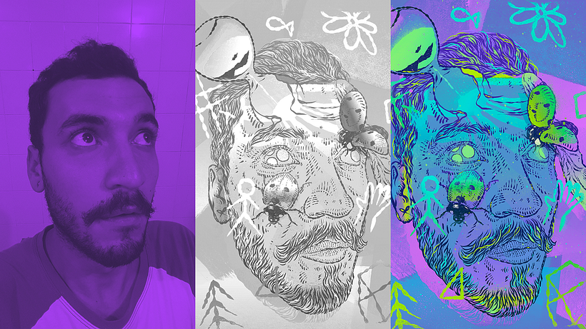 A série "Confusões" é uma imersão profunda no universo das emoções, onde cada ilustração transcende a barreira da pele para manifestar-se em uma explosão de cores e formas psicodélicas. Cada obra é um mergulho nos abismos do sentir, uma jornada visual que exterioriza a complexidade das nossas experiências emocionais.