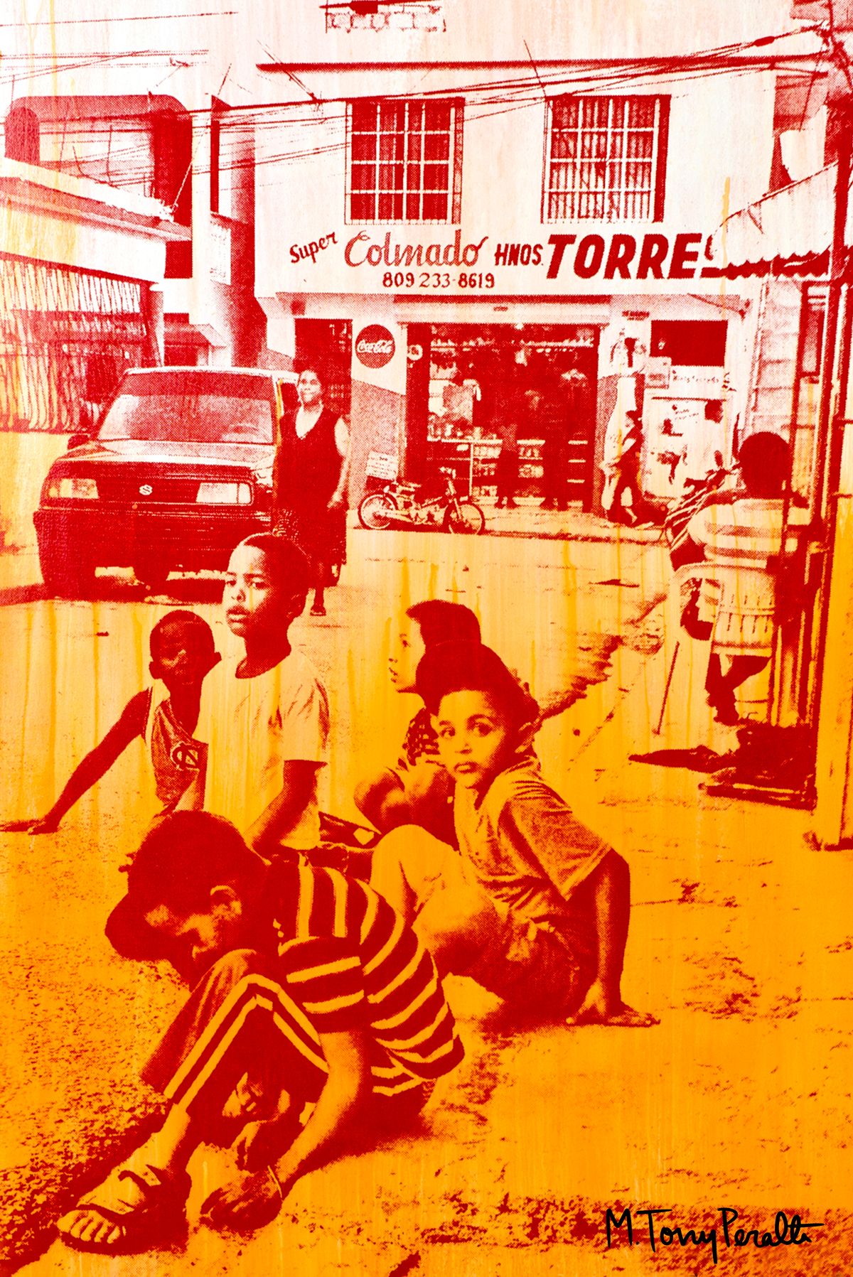 The Reconnected series was inspired by the reconnections I made from trips I've taken to the Dominican Republic from 2009-2013. The photographs I chose depict many aspects of the Dominican Republic that I love: family, the people, and things that make our culture unique. This work differs from my past work because it focuses more on people as opposed to the iconography of my latino/Dominican culture that i’ve done in my past work. This work is less stylized and clean. I let go of the perfectionist side of myself and accepted the unpredictable method of print making and worked with what may have seamed like a mistake and let it take shape in the art piece.