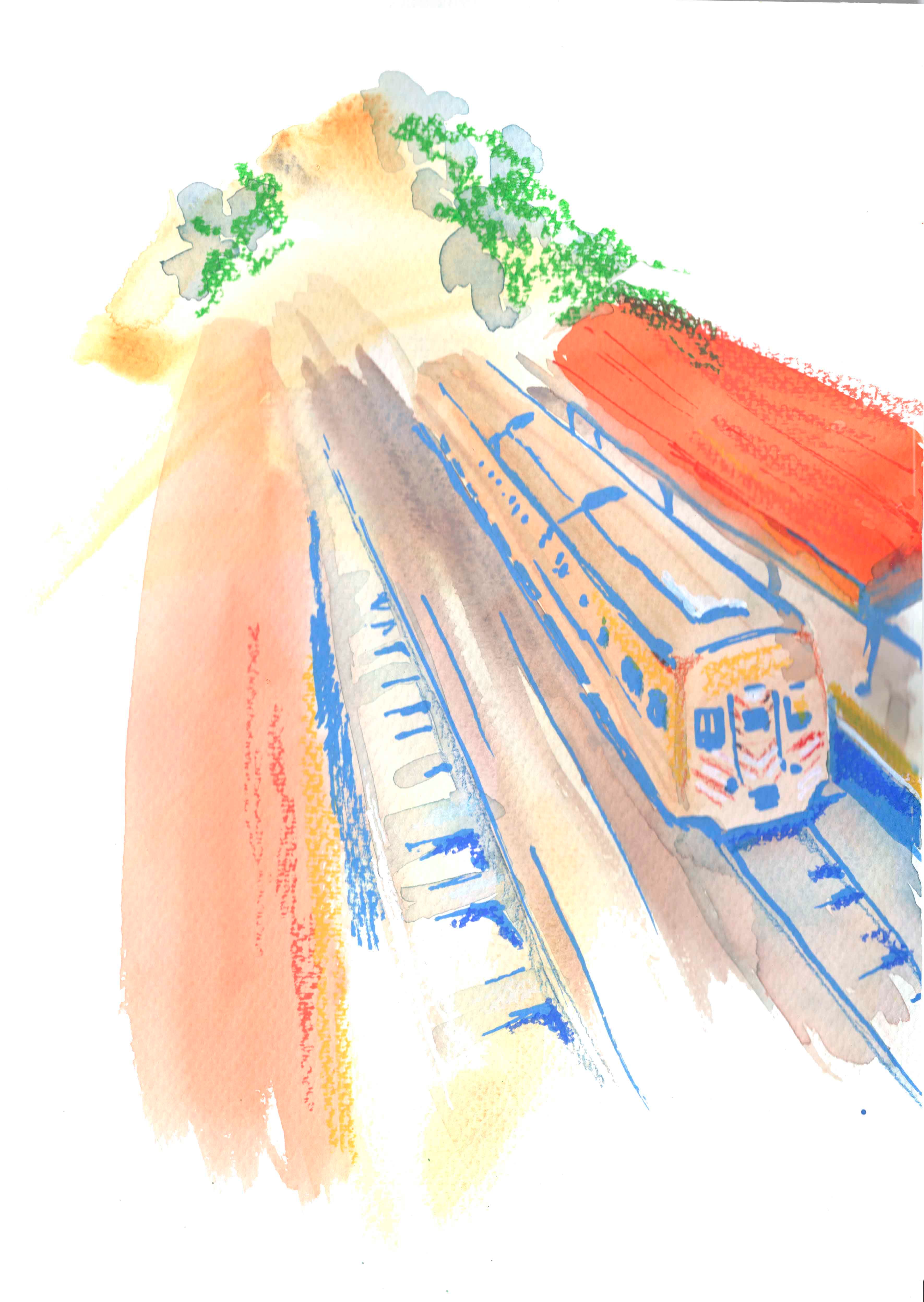 Mi Proyecto del curso: Urban sketching contemporáneo con técnicas mixtas. TREN!