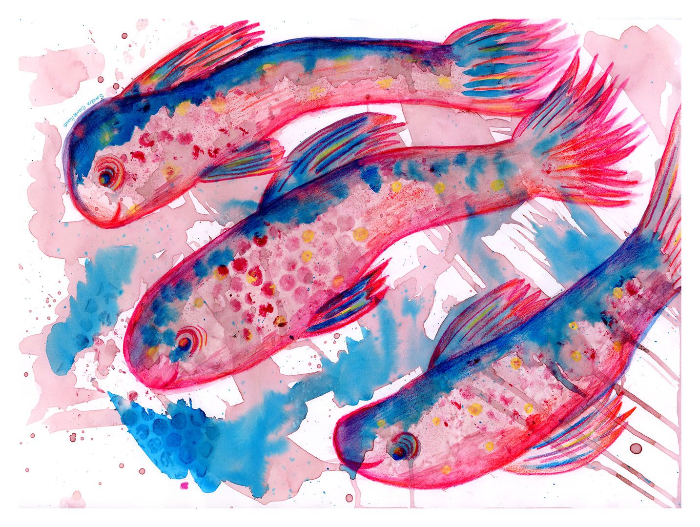 ·Peces, otro de los protagonistas que alimentan mi mundo imaginario. Los dibujo ejercitando la memoria, son una representación genérica de un pez, pero cada uno tiene su propia personalidad.