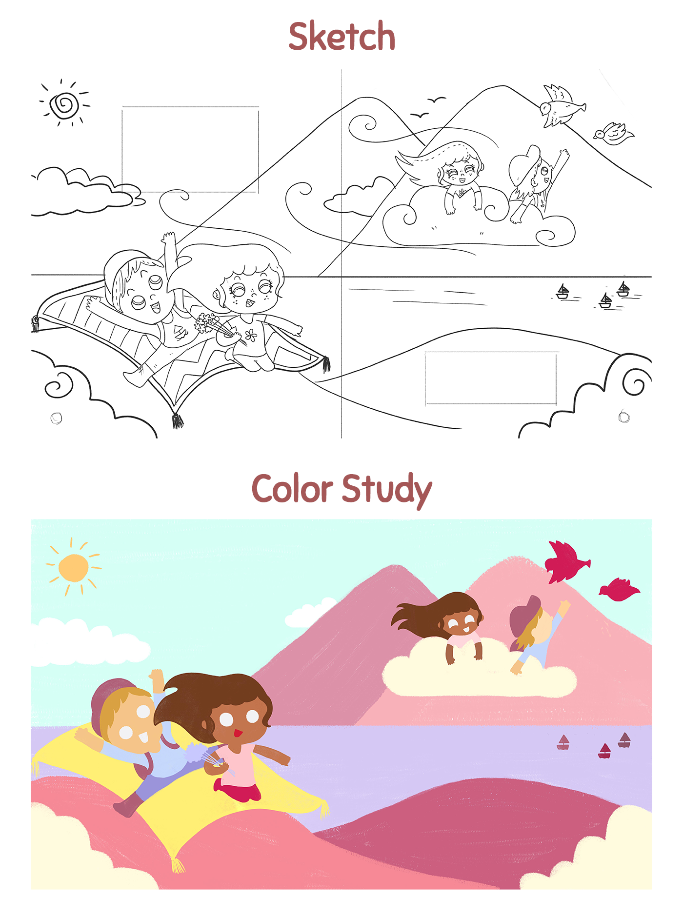 Para começar, gostaria de parabenizá-lo pelo seu design de personagem super adorável. Você usou uma proporção perfeita para ambos os personagens (que, além disso, se adapta muito bem aos usados na maioria dos livros infantis) Por outro lado: As poses são muito bem conseguidas (já que são perfeitamente equilibradas e conseguem acentuar as sensações e experiências dos personagens)