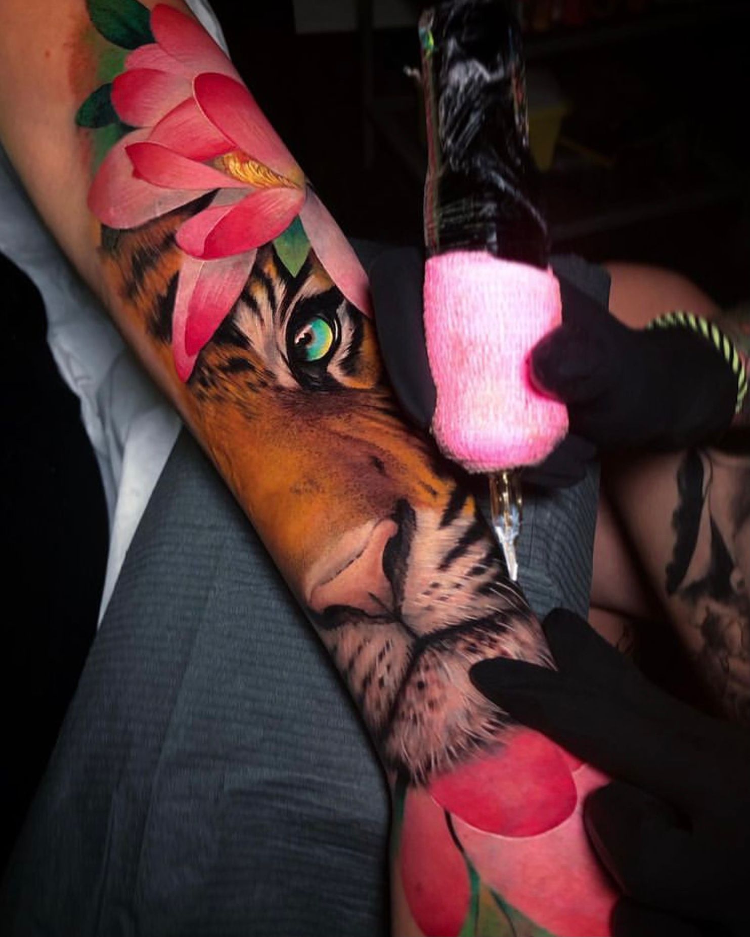 Tigre con flor de loto. 7h de trabajo. Realizado en 2022