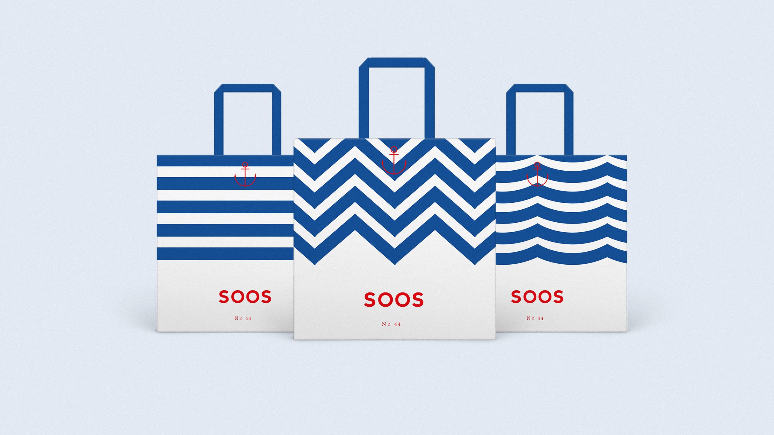 Design de identidade e aplicações de marca para a empresa de roupas SOOS.