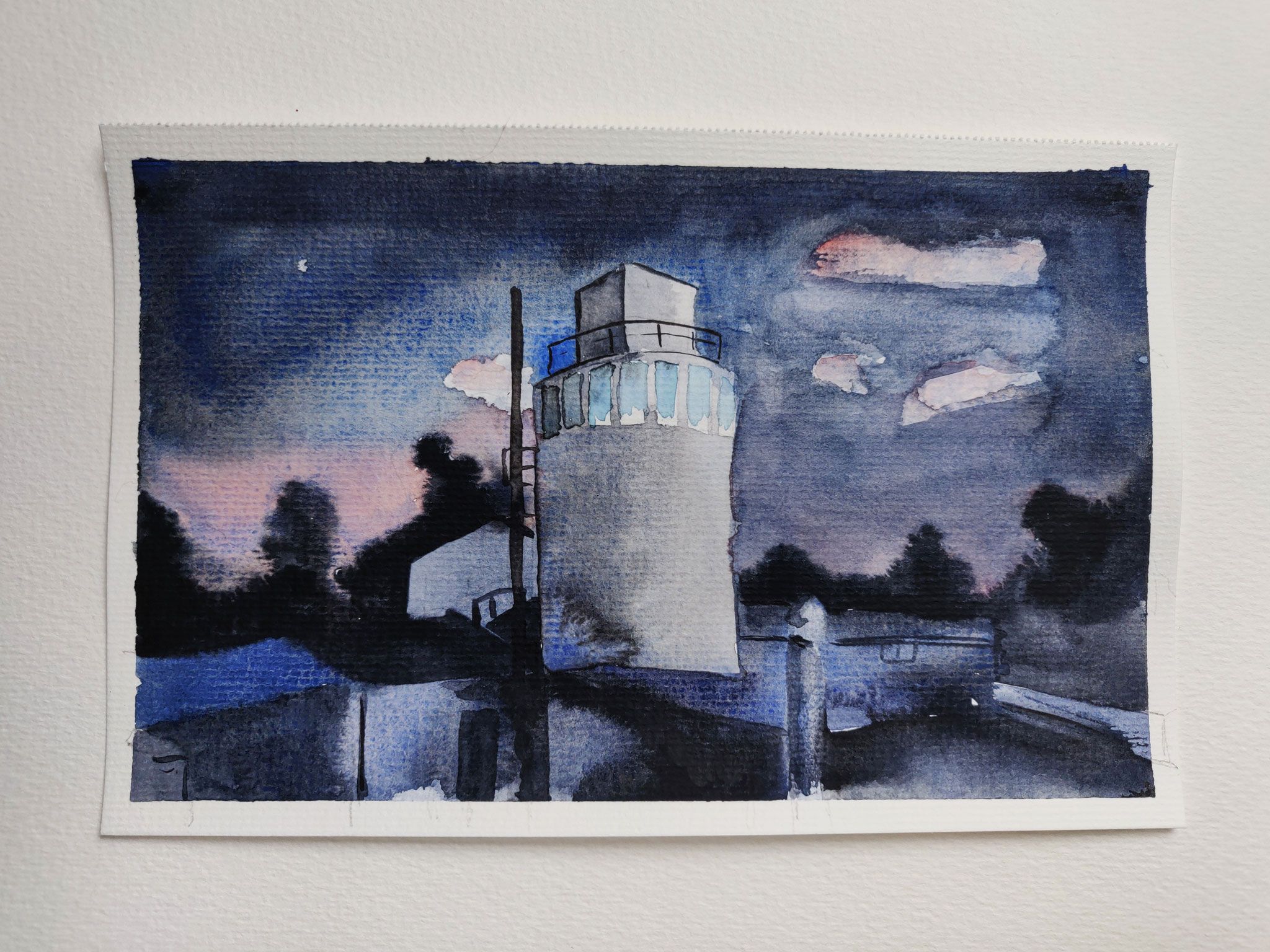 - dass es tricky ist schnell und genau zu arbeiten. Schnell, damit das Wasser nicht unter dem Pinsel wegtrocknet und genau, dass nicht solche Wolkenungetüme entstehen, weil ich zu hektisch drübergearbeitet habe