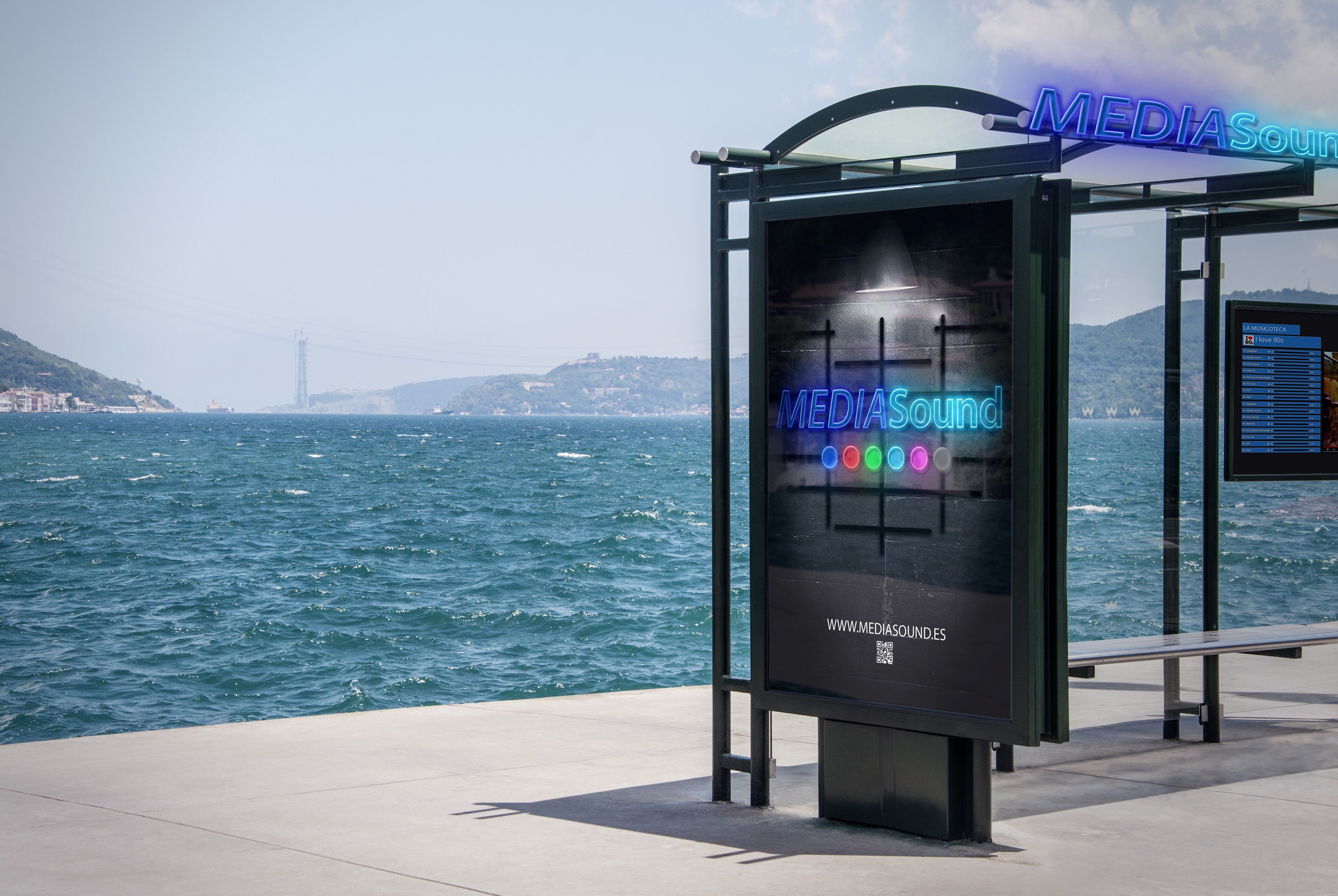 La gran apuesta para la campaña publicitaria del canal era la interactividad tanto on-line como of-line por eso creamos la "parada musical" entre otras acciones. La idea era transformar las paradas de autobuses en pequeñas locales musicales, ambientados con neones y pantallas interactivas para elegir la canción deseada que sonaría a través de unos altavoces, mientras se espera el autobús.