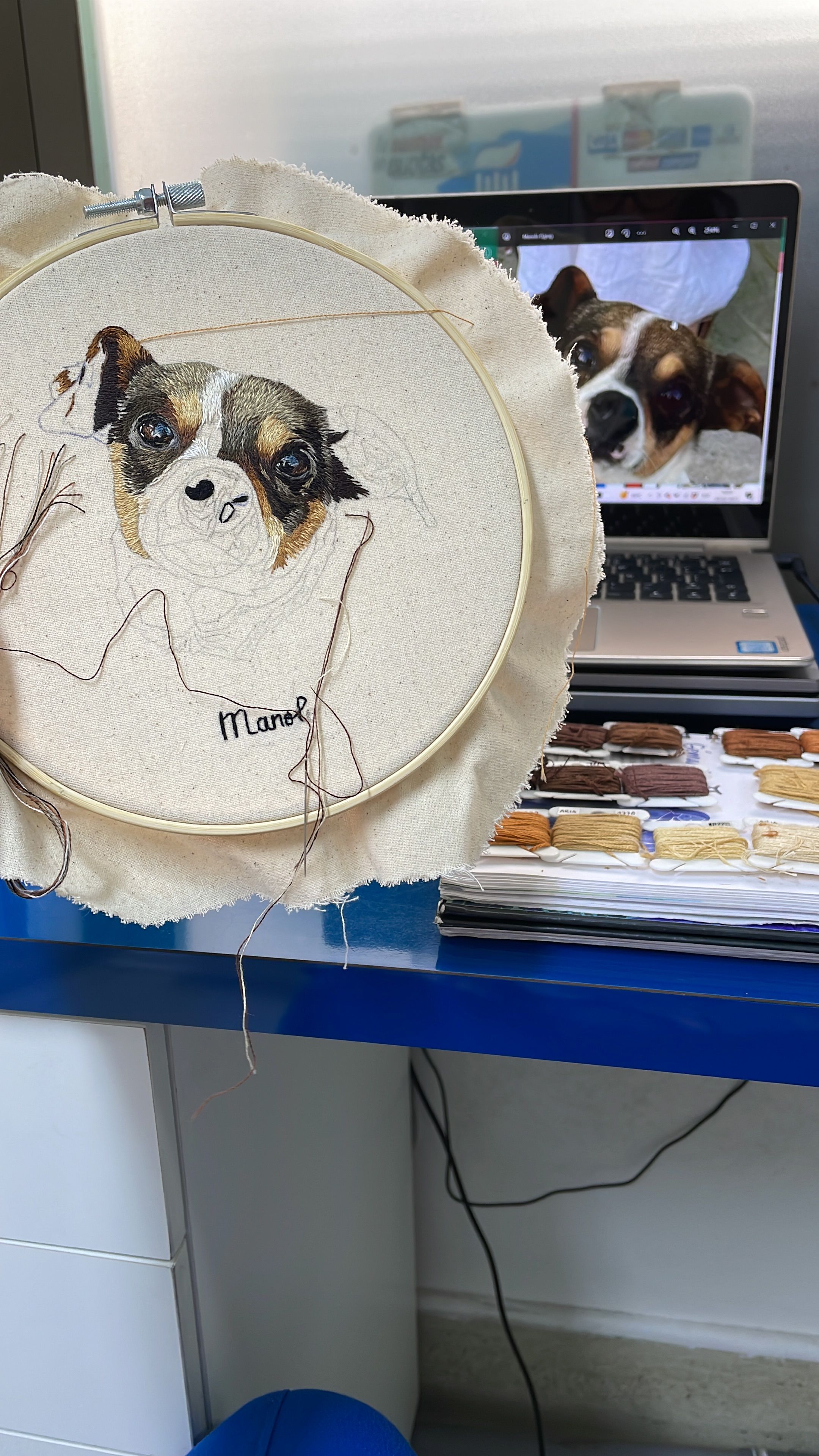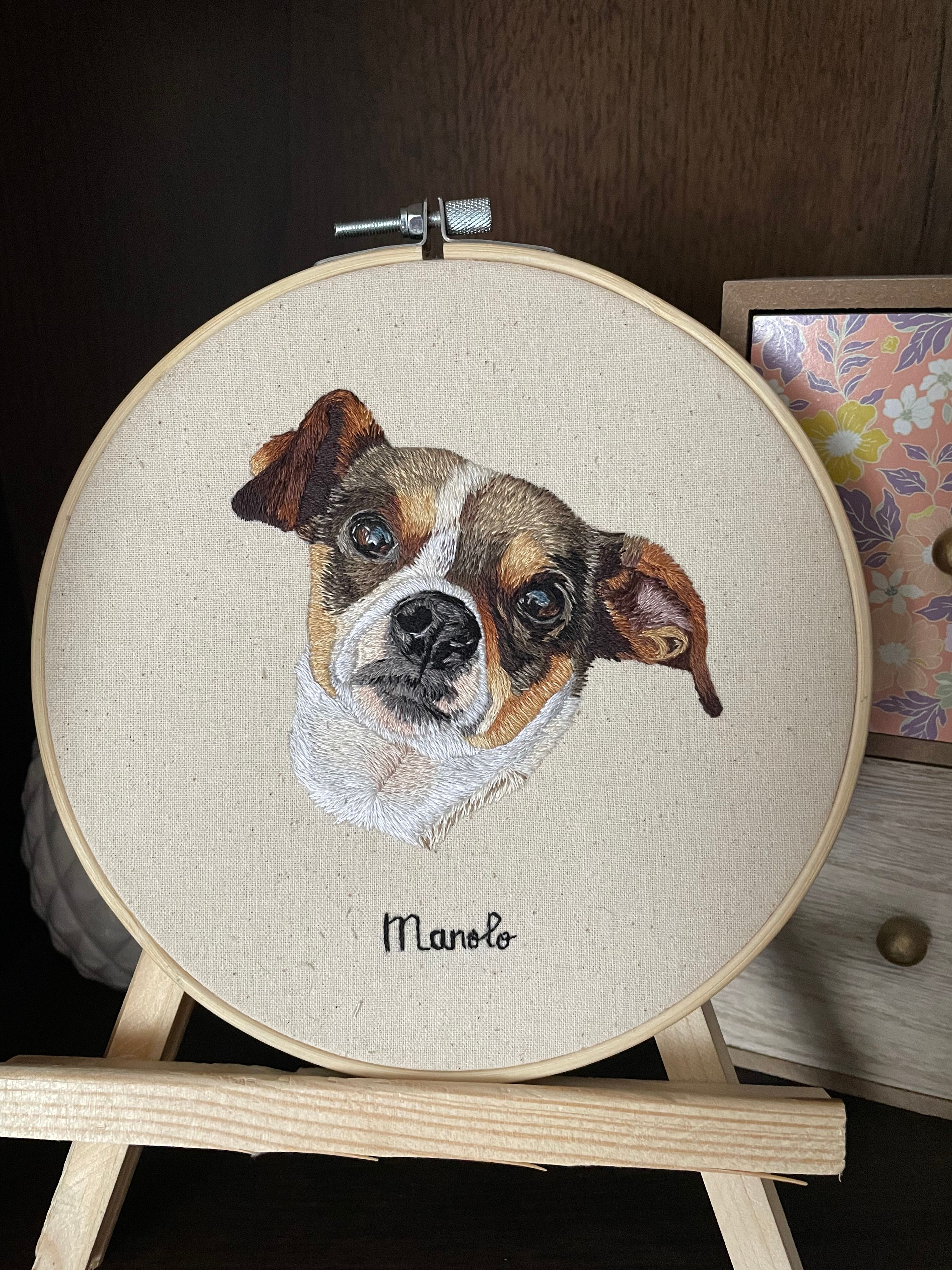 Retrato bordado en bastidor de 15 cm con hilos DMC y Ariadna Mulina