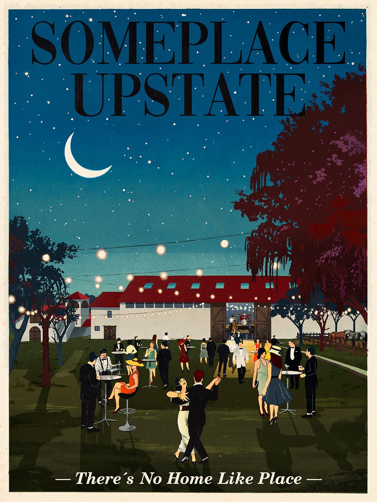 Serie de carteles siguiendo la tradición gráfica del 'Travel Poster' para Someplace Upstate, un rancho/resort de ensueño ubicado en Marlboro en el Upstate de Nueva York, justo en el corazón de Hudson Valley.
