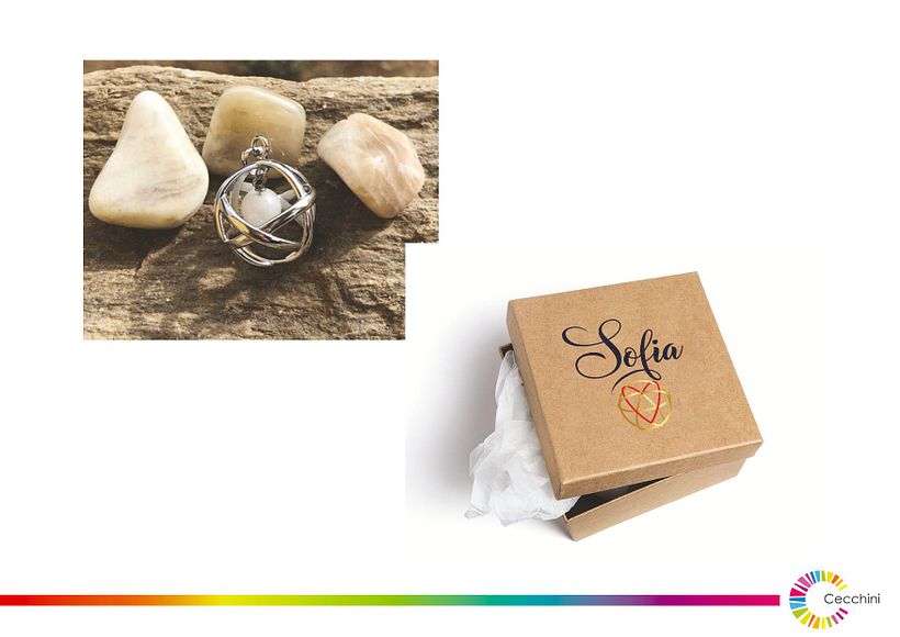 La chiamai o le mandai un messaggio vocale dicendole: "E' arrivato! è lui, lo sento!" Organizziamoci per la presentazione. Nei giorni successivi sentii molto forte di creare un'immagine coordinata con dei fiori e dentro la Ginesa, era un richiamo forte e avevo subito in mente il disegno da fare. Anche quando realizzai questo disegno sentii che avevo completato un'altra parte ma sentivo che non era finita... arrivò poi l'intuizione di realizzare delle scatole con il marchio di Sofia con dentro la Genesa che poteva donare alle sue clienti. Ecco nel momento in cui realizzò questa ultima parte sentivo che eravamo al completo. Che tutto era al suo posto.