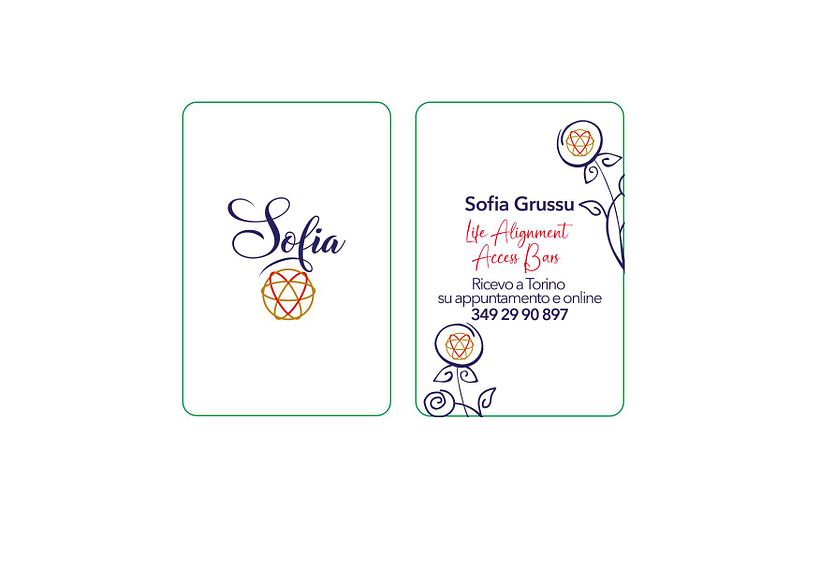 Decisi di consigliare a Sofia un biglietto da visita con gli angoli arrotondati con la carta perlata che si addiceva al suo profilo e con il logo frontale con vernice 3D.