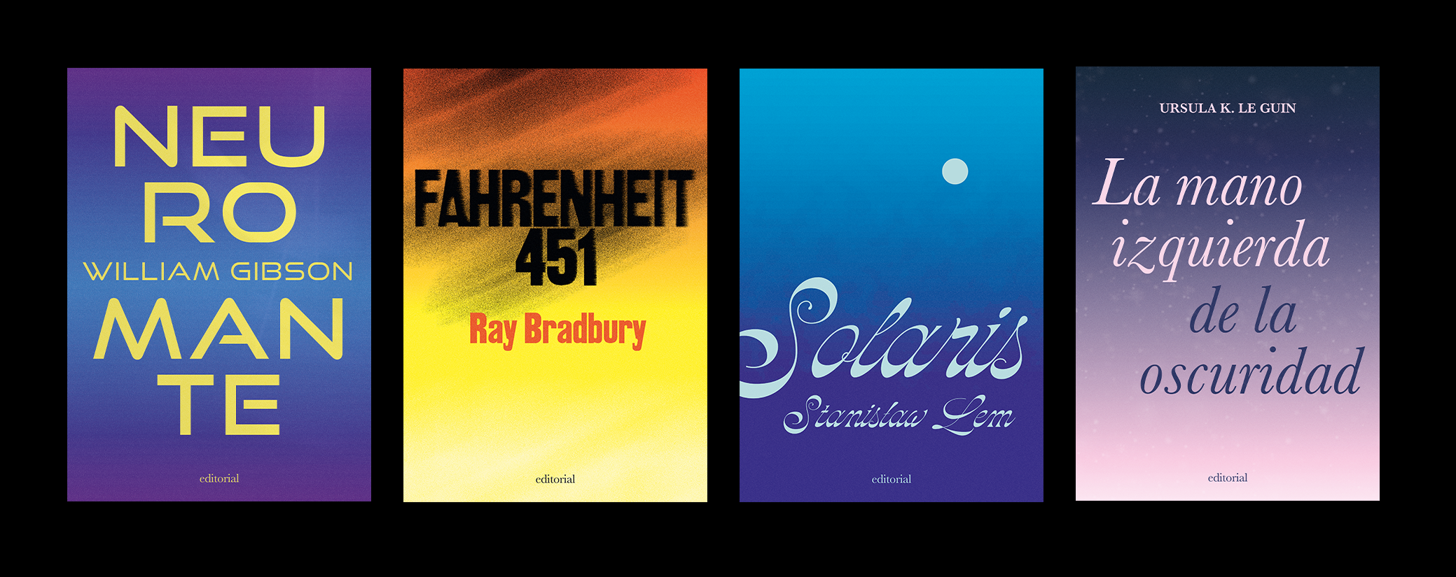 LogotipoMaquetación para una revistaMaquetación para una revistaJuego tipográficoDiseño de cubiertas para una colección de ciencia ficciónPortada de Fahrenheit 451, de Ray BradburyPortada de Solaris, de Stanisław LemPortada de Neuromante, de William GibsonPortada de La mano izquierda de la oscuridad, de Ursula K. Le Guin